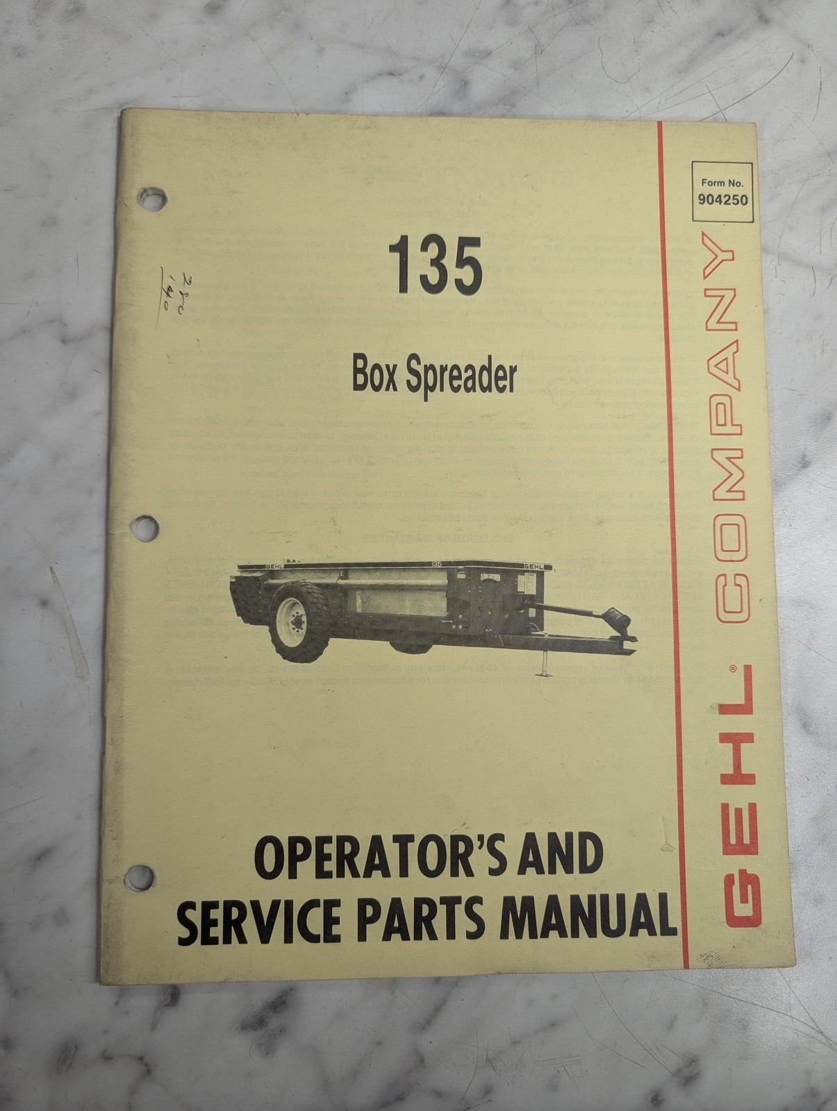 Gehl Operator’S Manual Service Repair Parts Catalog 135 Box Spreader 904250