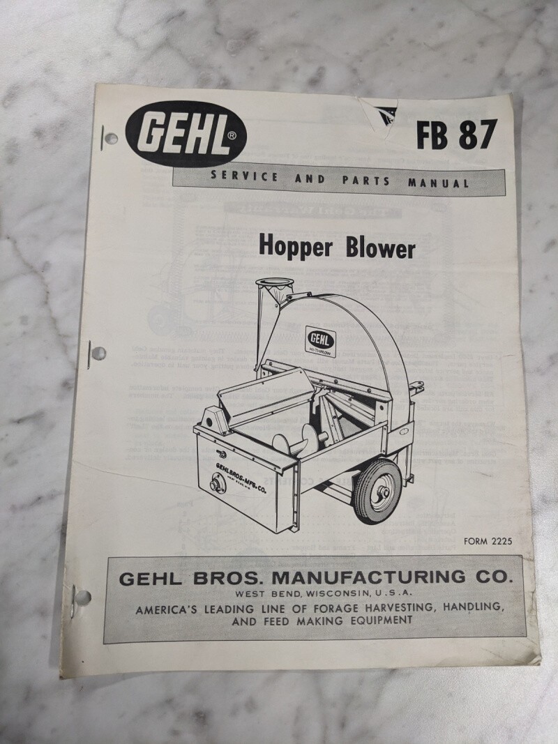 Gehl Owner Operator Service Manual Parts List Book Catalog Fb87 Hopper Blower