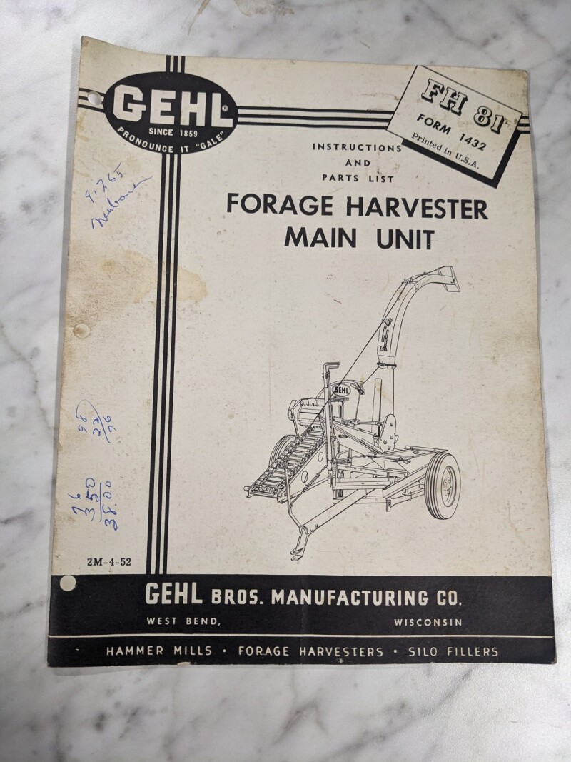 Gehl Owner Operator Service Manual Parts List Catalog Fh 81 Forage Harvester