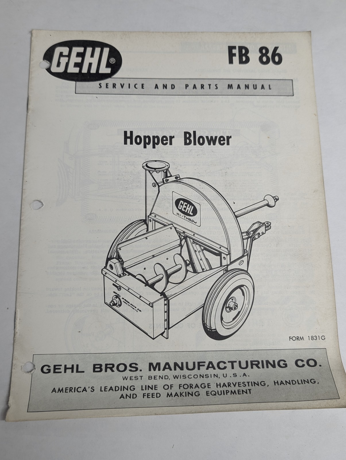 Gehl Service Parts List Catalog Manual Model Fb 86 Hopper Blower 1831G