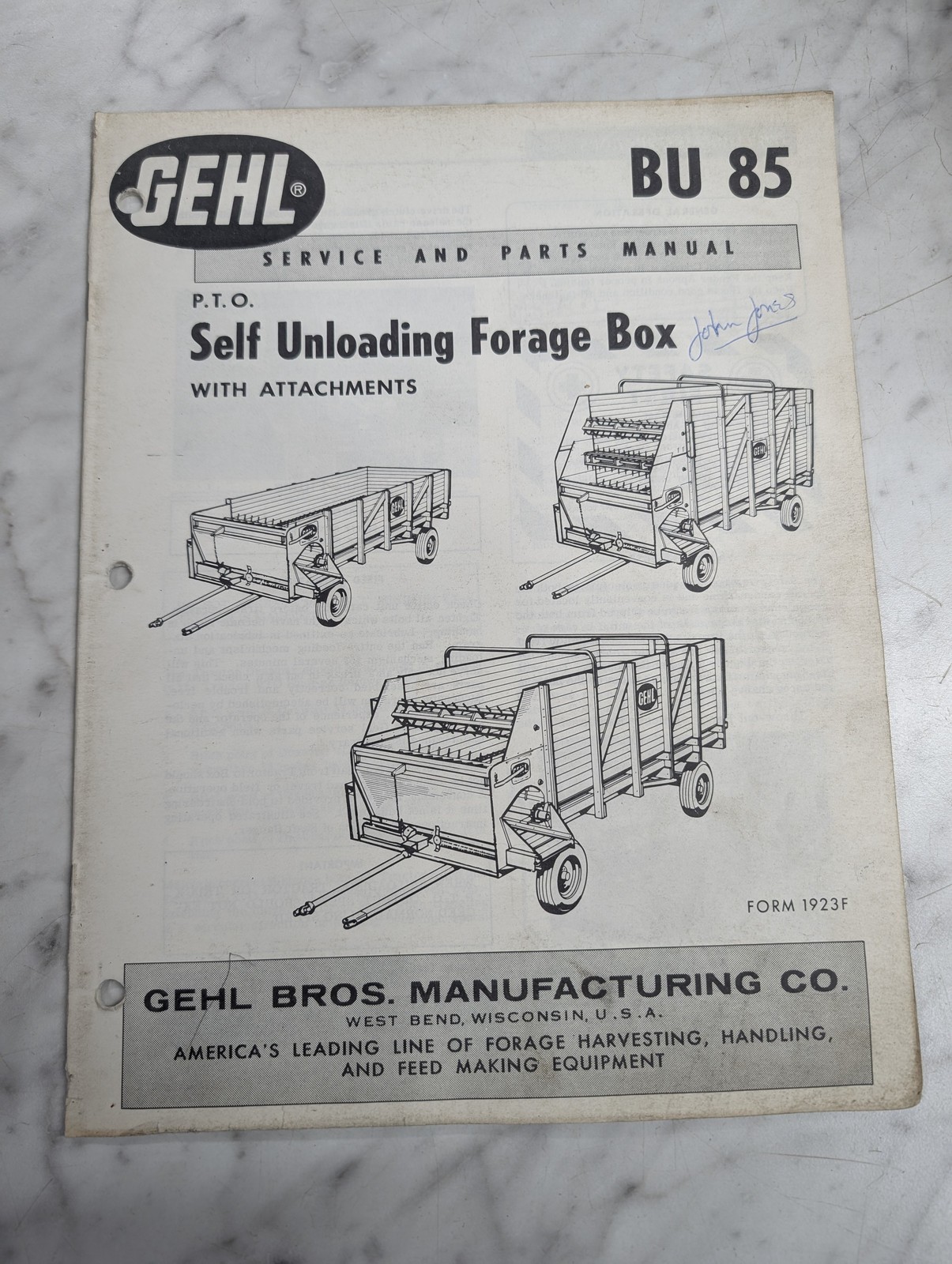 Gehl Service Repair & Parts Catalog List Manual Bu 85 Forage Box 1923F