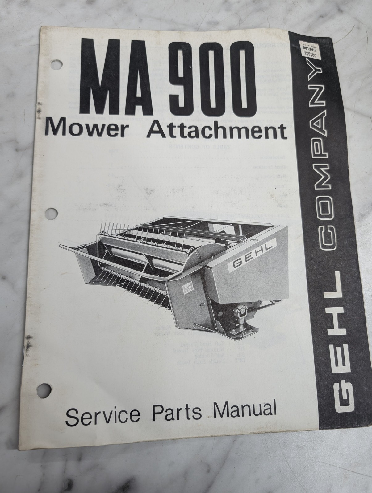 Gehl Service/Repair Parts Catalog Manual Ma 900 Mower Attachment 901240