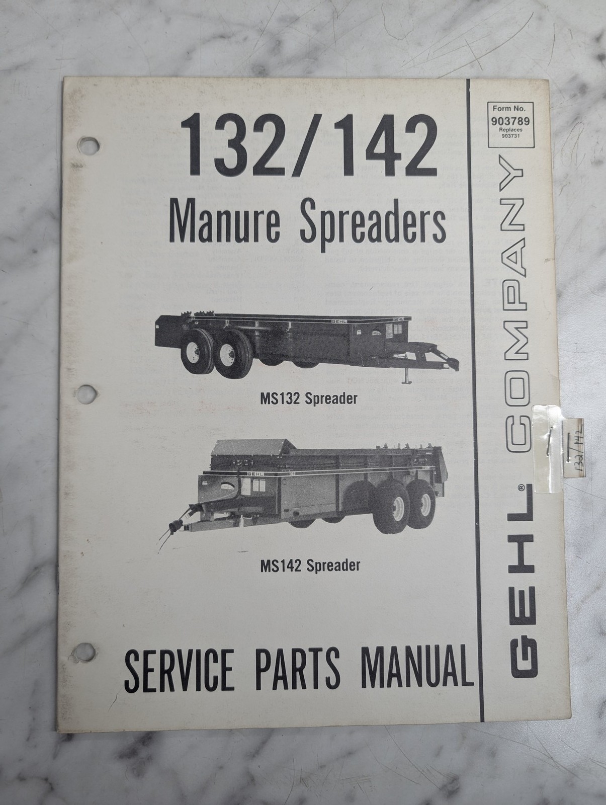 Gehl Service Repair Parts Manual Catalog Ms 132 142 Manure Spreaders 903789