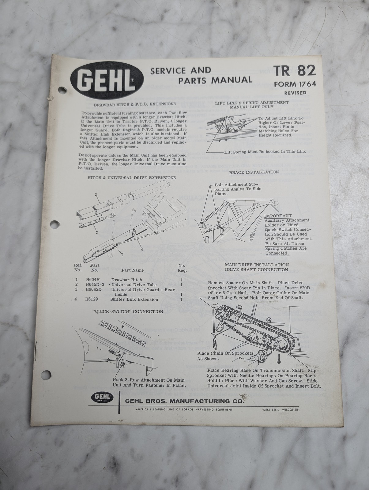 Gehl Tr 82 Form 1764 Service Parts Manual List Catalog Book Guide Reference
