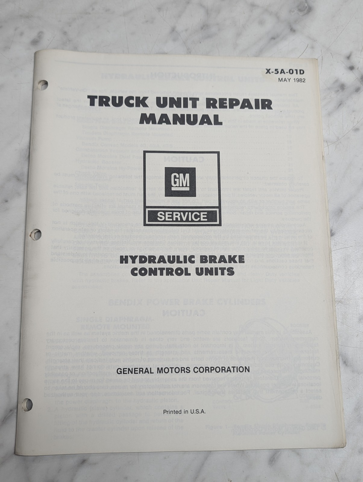 General Motors Gm X-5A-01D Truck Unit Repair Manual Service Hydraulic Brake