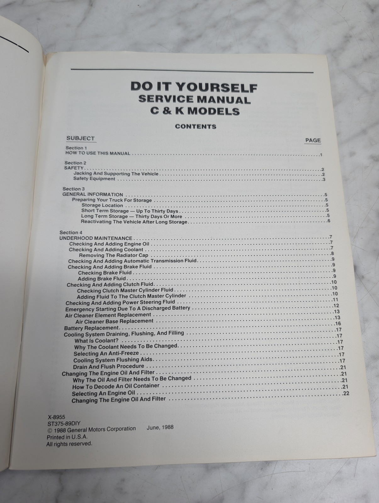 General Motors Service Manual C K Models X-8955 St375-89Diy Repair Shop 1988