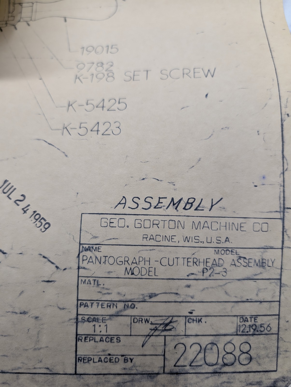 Geo Gorton Assembly Diagram Drawing Pantograph Cutterhead Assembly P2-3