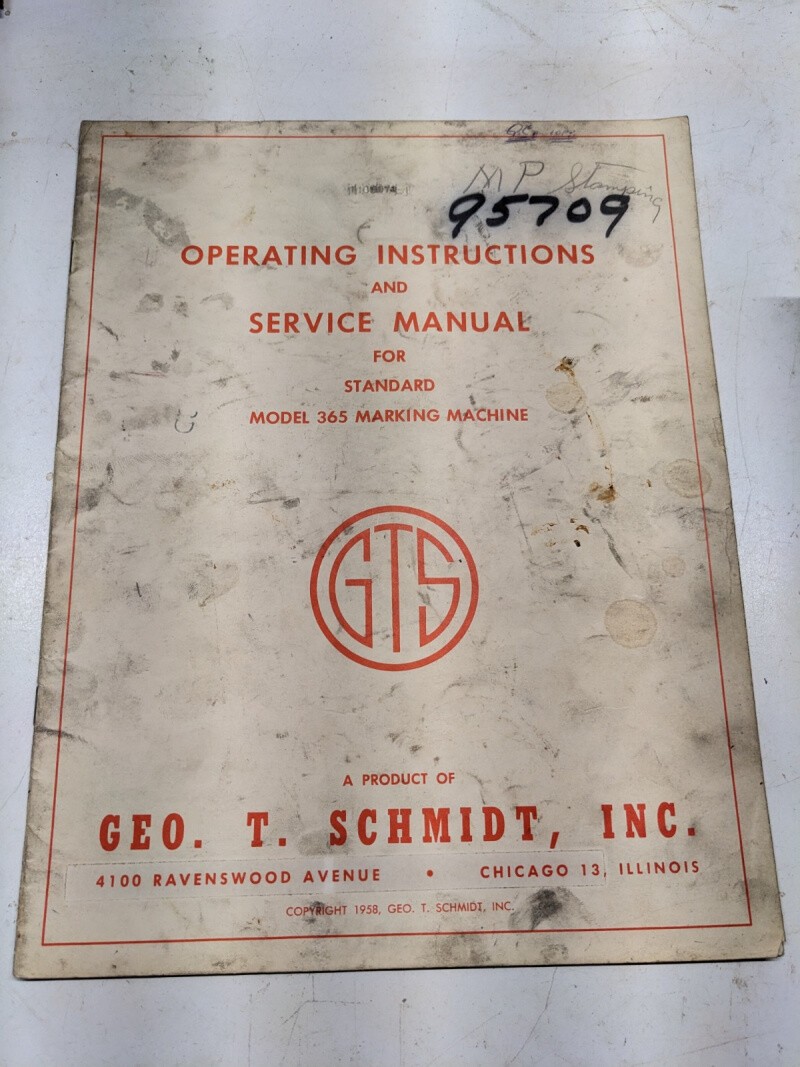 Geo Schmidt Operating Instructions Service Manual Model 365 Marking Machine 1958