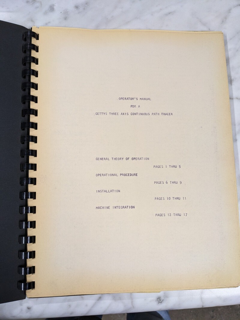 Gettys Operator Service Manual 3 Axis Continuous Path Tracer Shop Tool Book