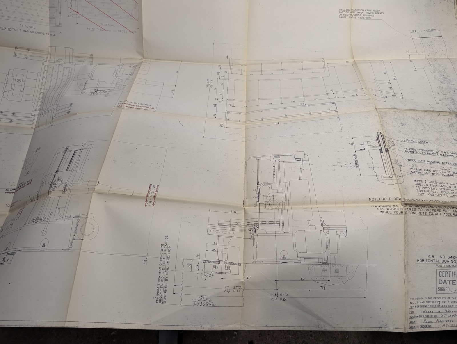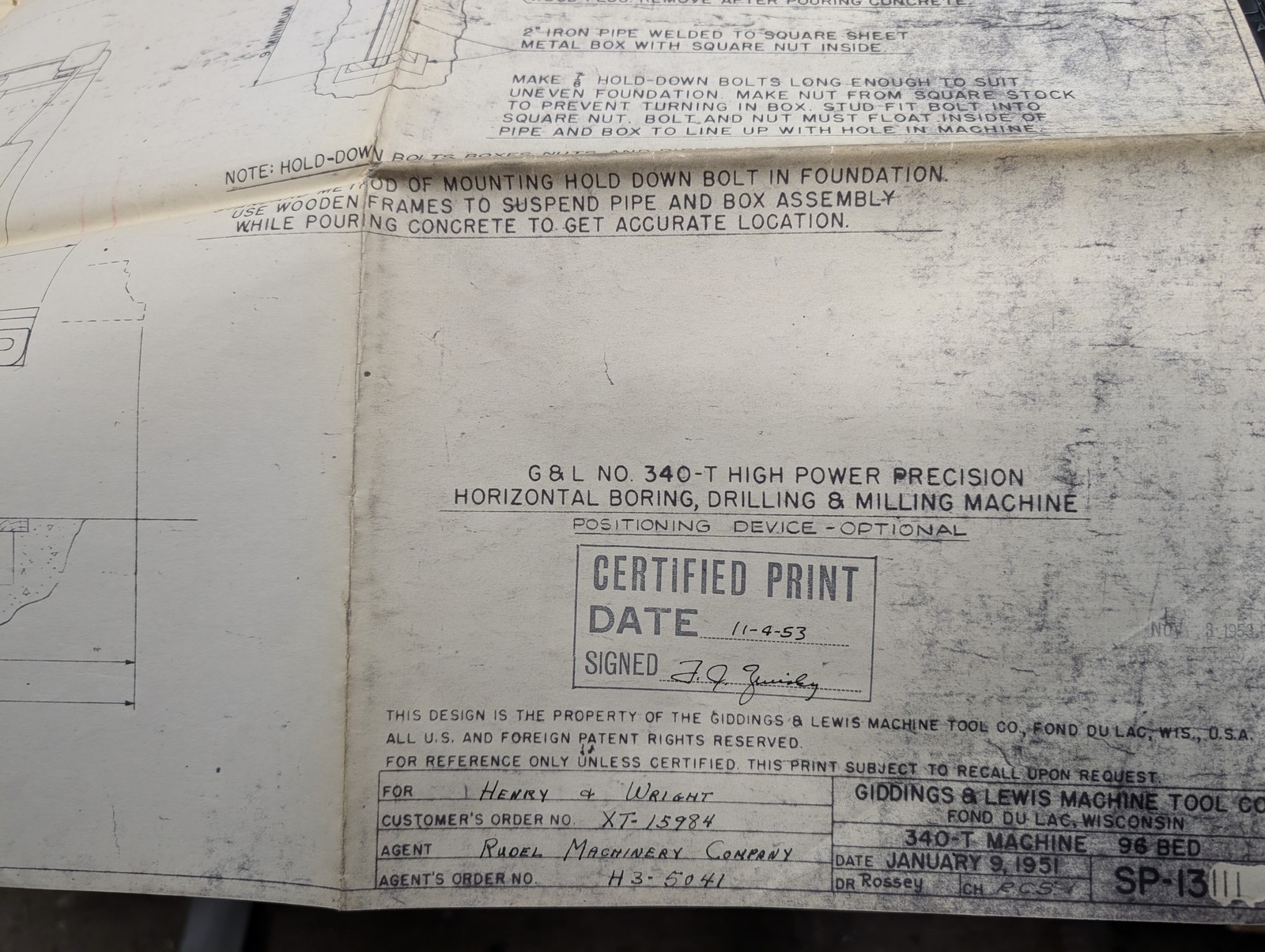 Giddings & Lewing Machine Tool 340-T Boring Drilling Milling Layout Drawing