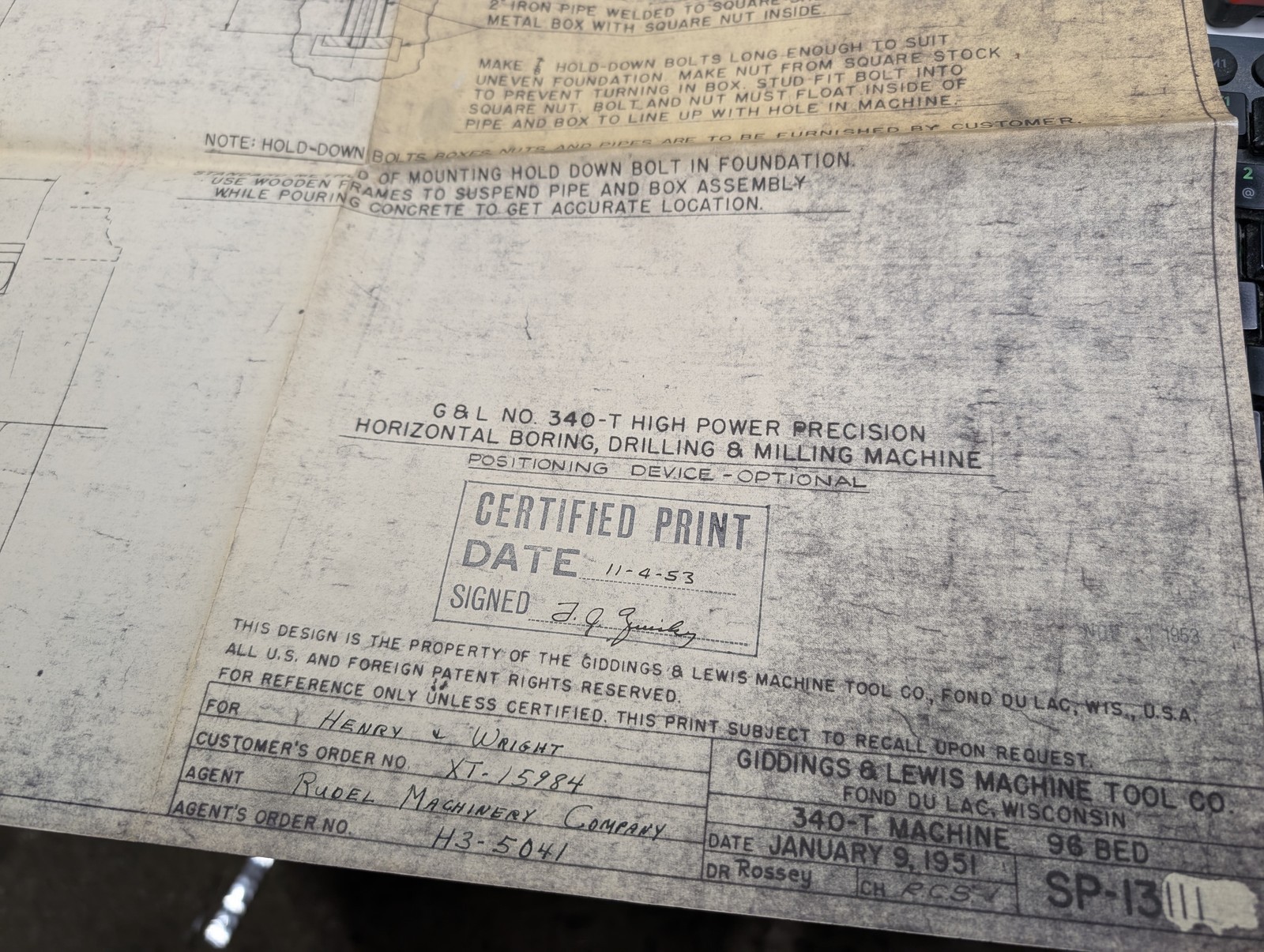 Giddings & Lewing Tool #340-T Boring Drilling Milling Machine Layout Drawing