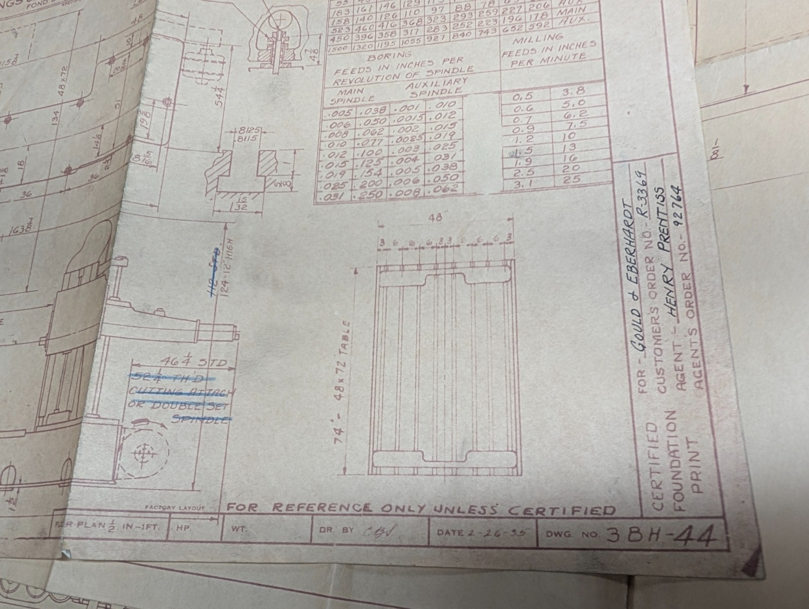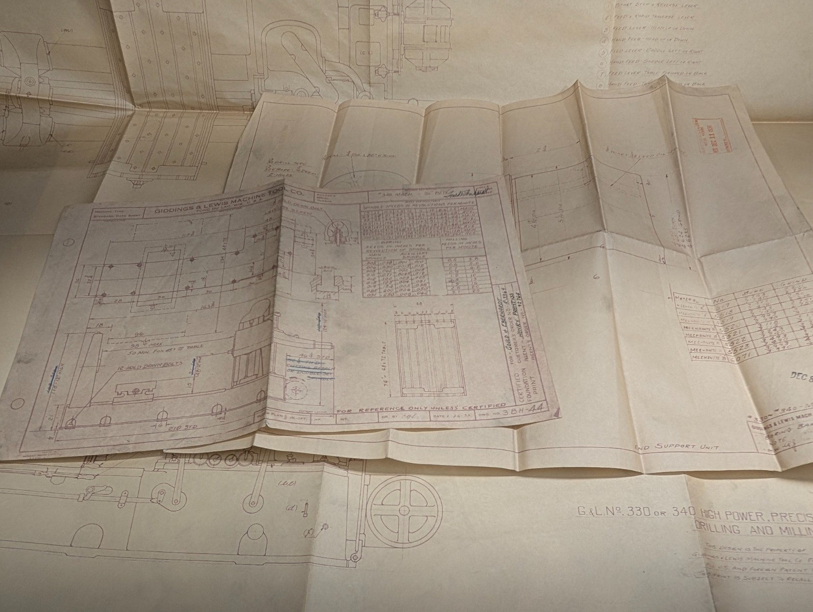 Giddings & Lewis #340 Machine Tool Engineering Drawings Diagrams Blue Prints Lot