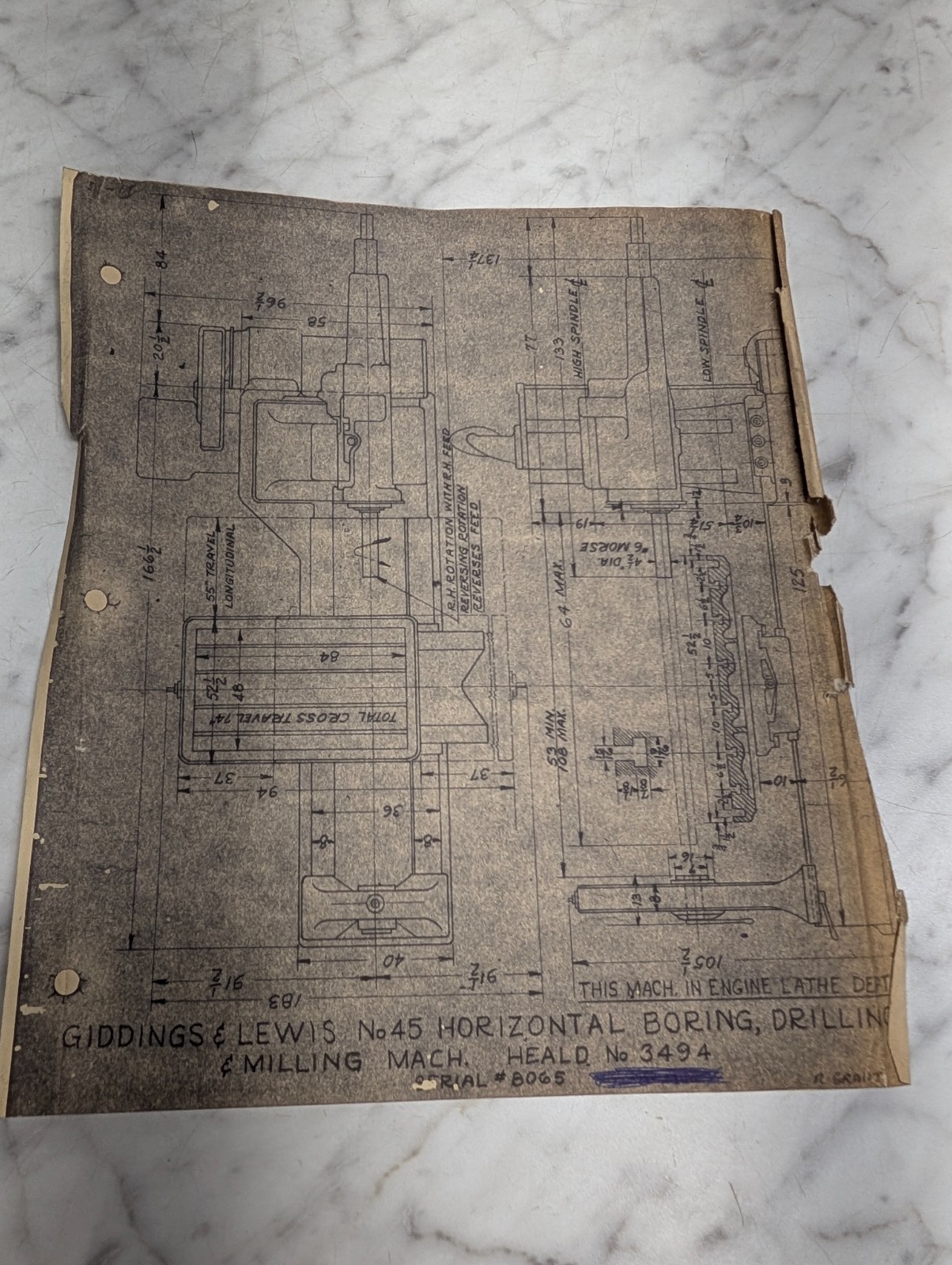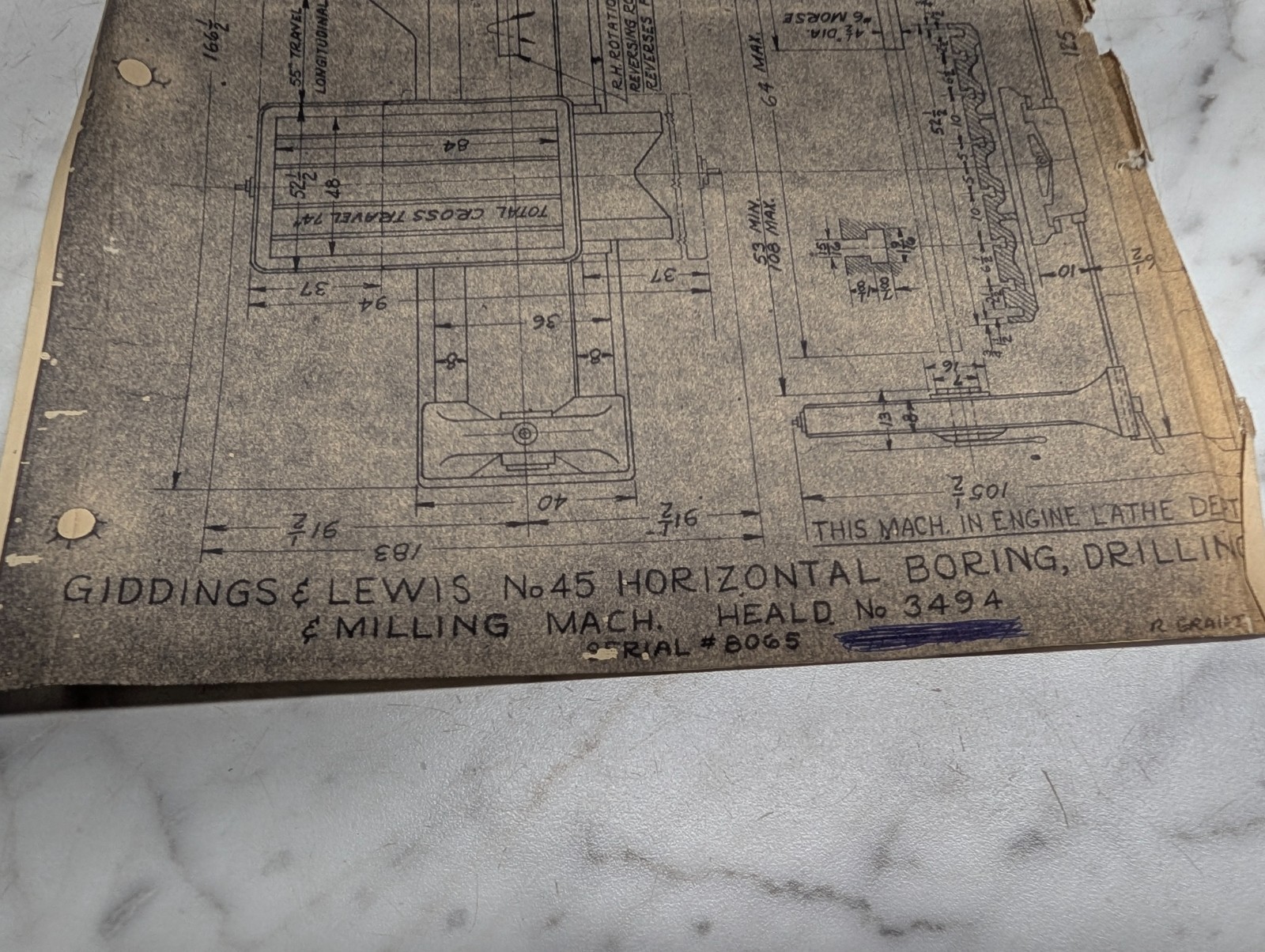 Giddings & Lewis #45 Machine Tool Engineering Drawing Diagram Blue Print