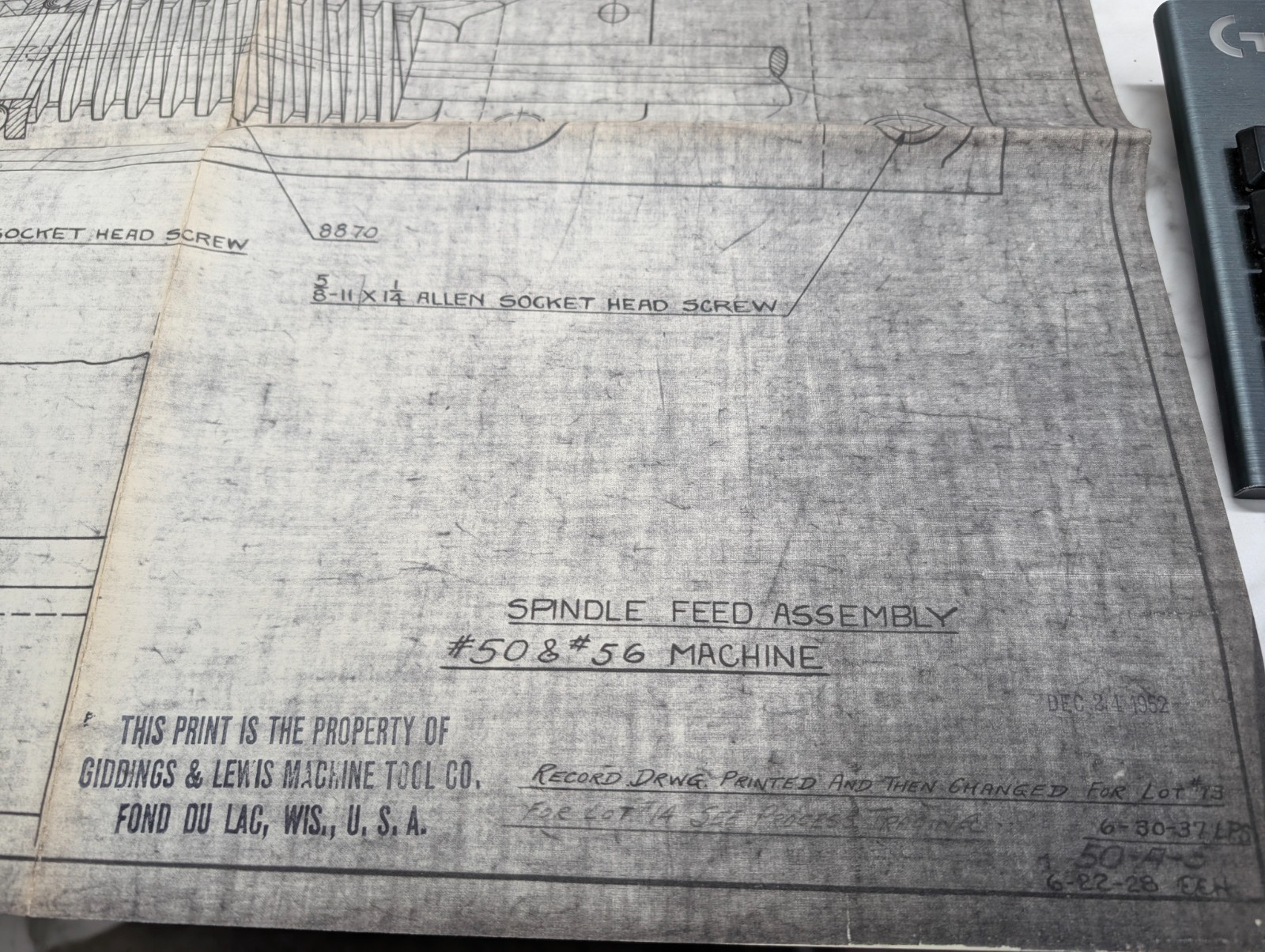 Giddings & Lewis #50 56 Machine Tool Spindle Feed Assembly Drawing Blue Print