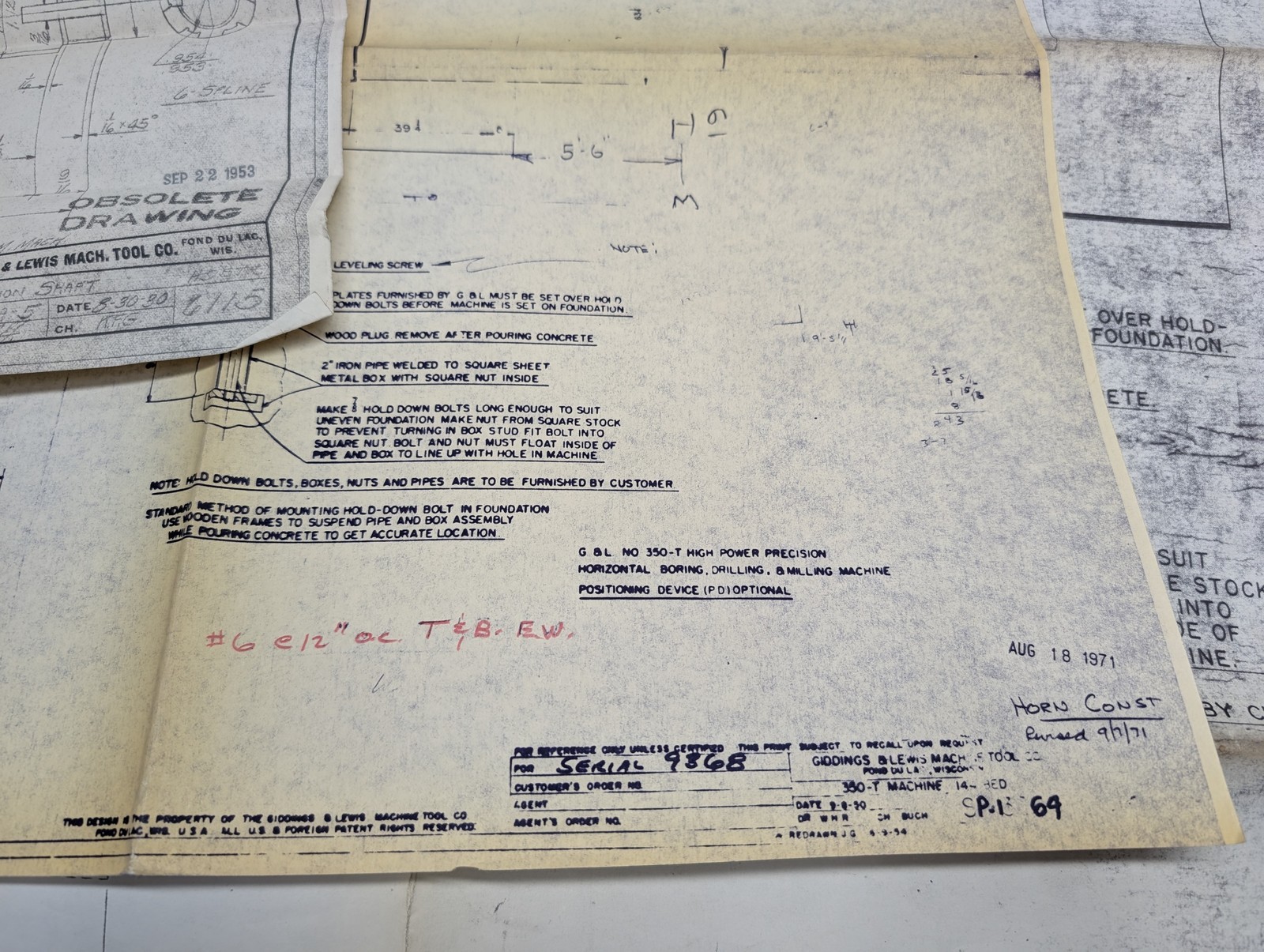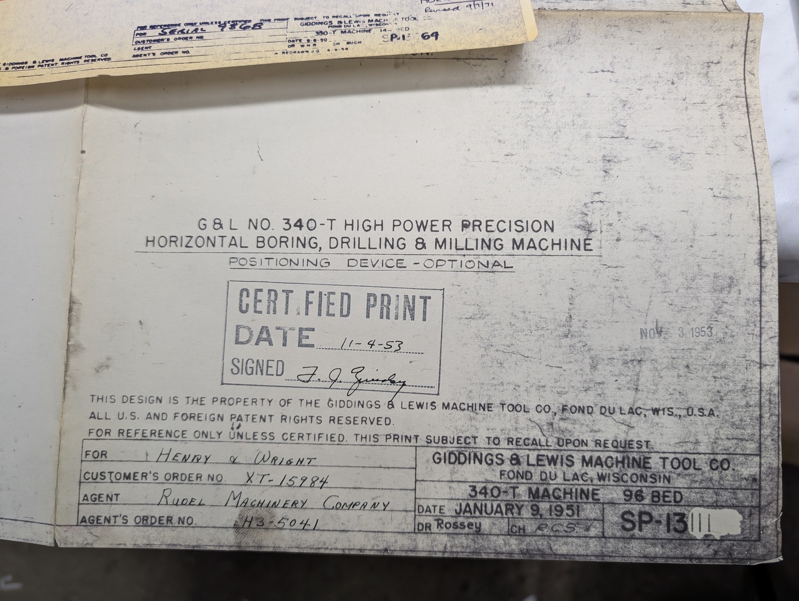 Giddings & Lewis Machine Tool #340-T Drawings Prints Diagrams Information