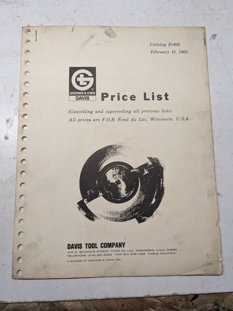 Giddings Lewis Sales Brochure Price List Catalog D-400 1969 Davis Machine Tool