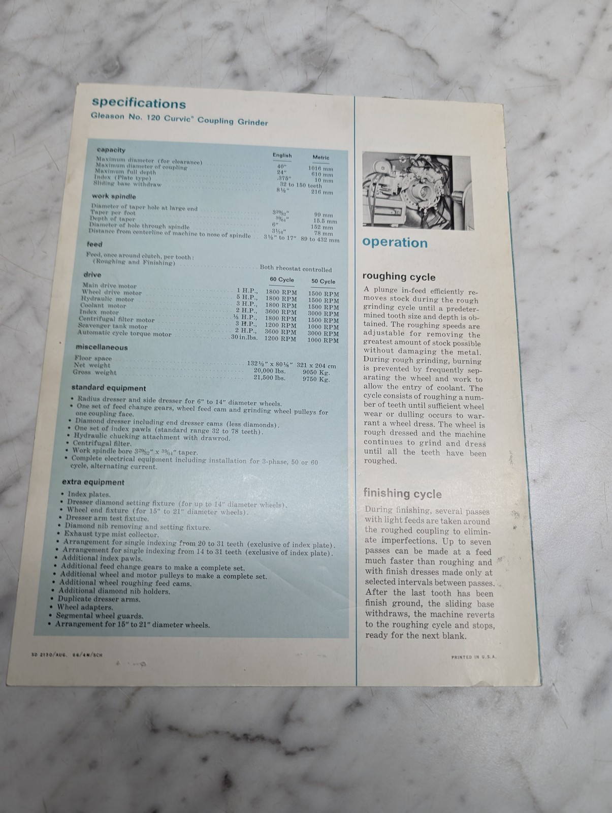 Gleason No 120 Curvic Coupling Grinder Sales Brochure Literature