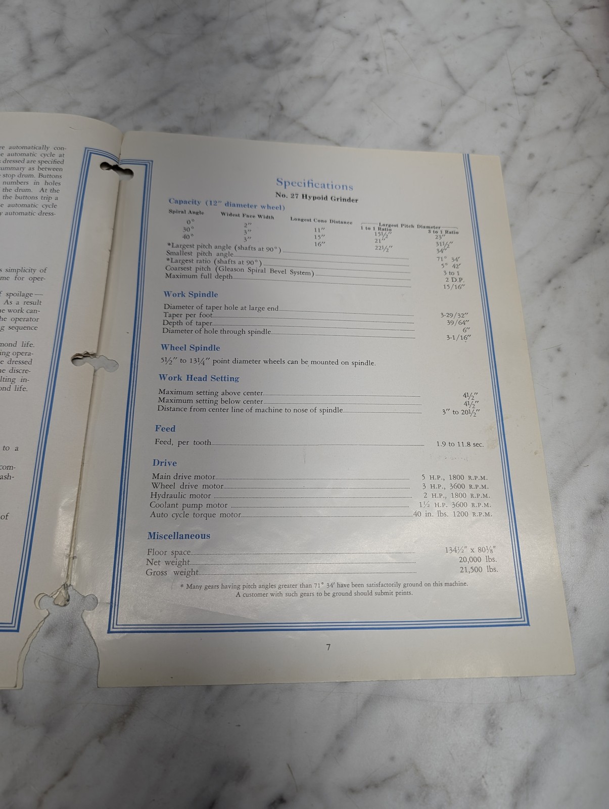 Gleason No # 27 Hypoid Grinder Works Code Word Tache Sales Brochure