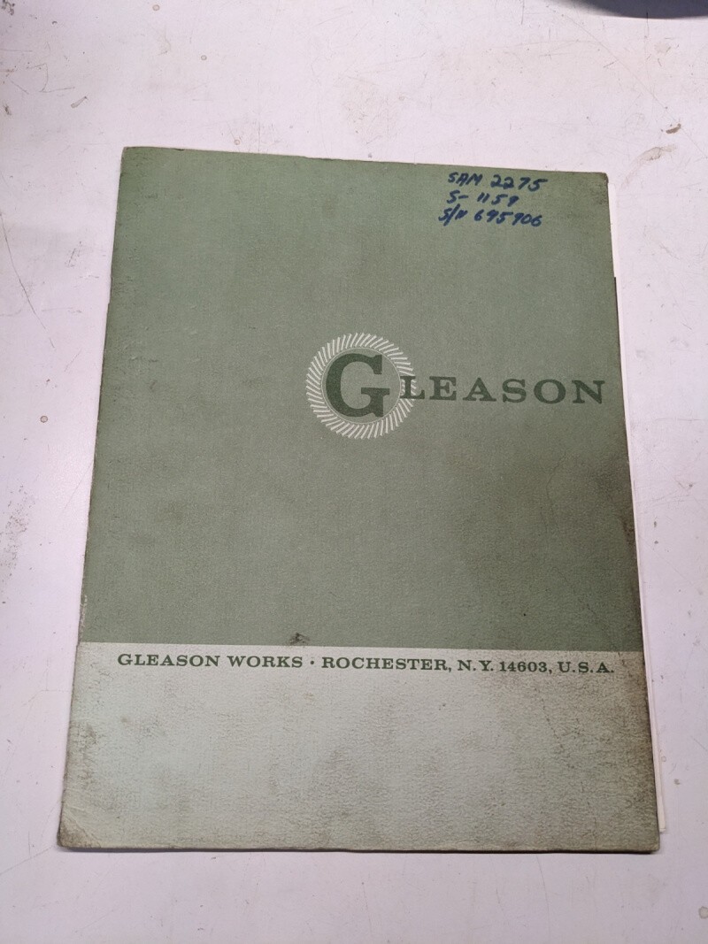 Gleason Parts List Book Catalog Manual 453 Hypoid Cutter Harpener Toho 1962