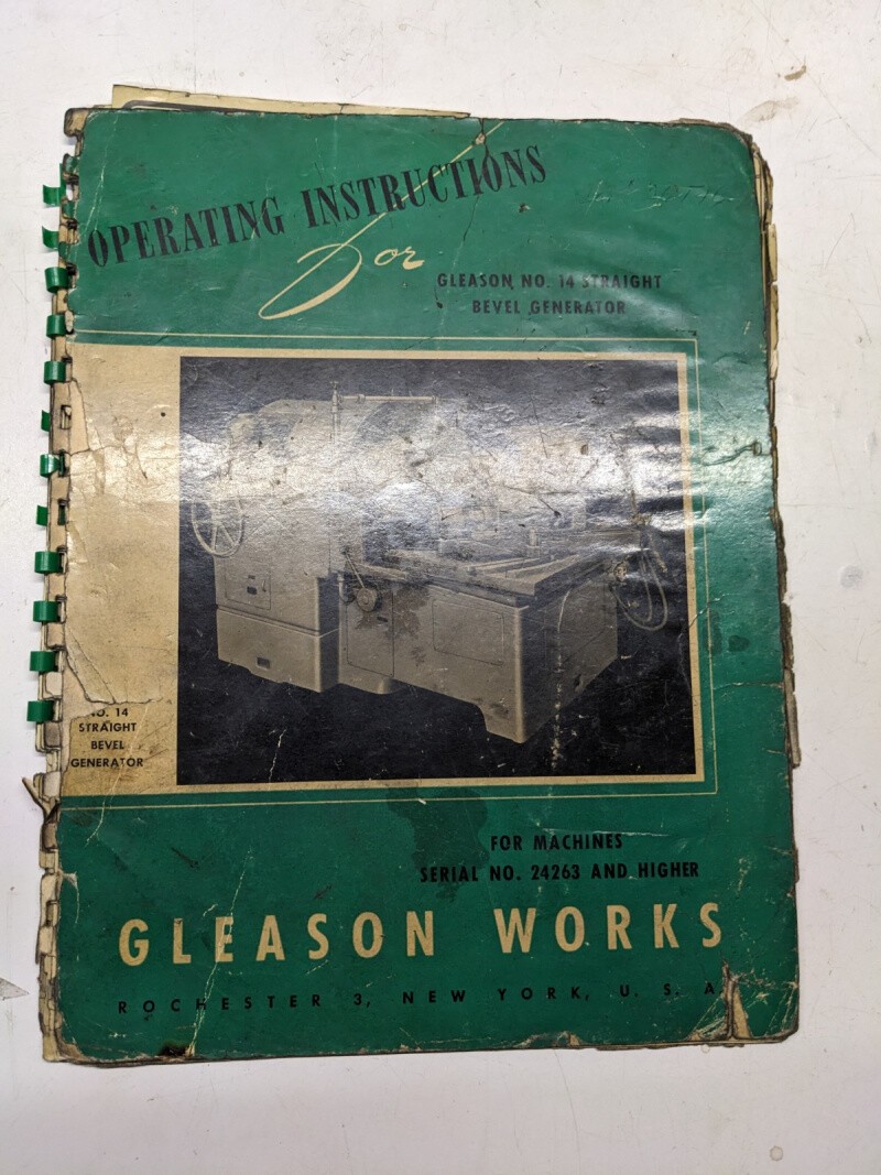 Gleason Works Operation Instruction Manual No 14 Straight Bevel Generator