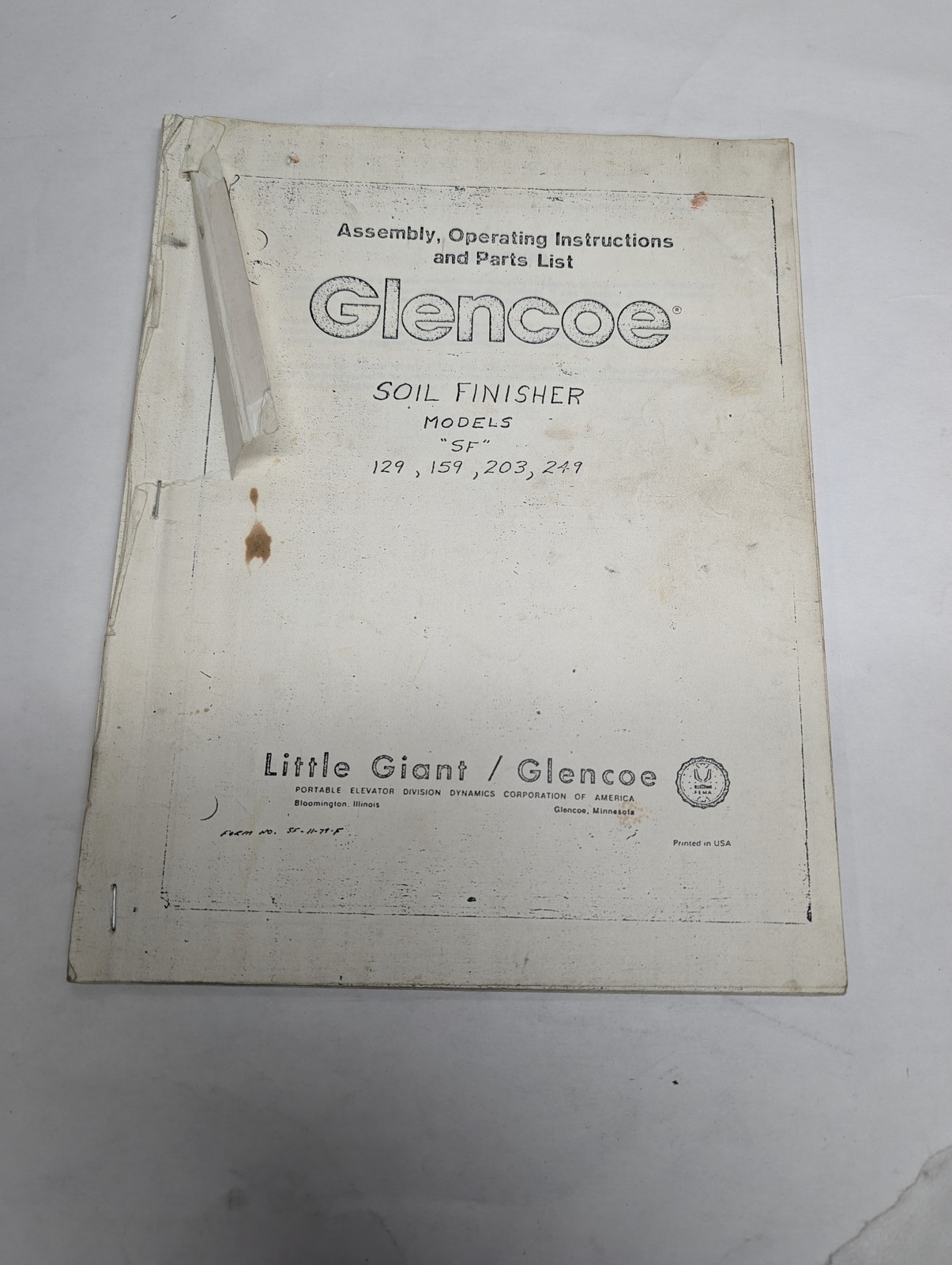 Glencoe Soil Finisher Models Sf 129 159 203 249 Assmebly Operation Parts Manual