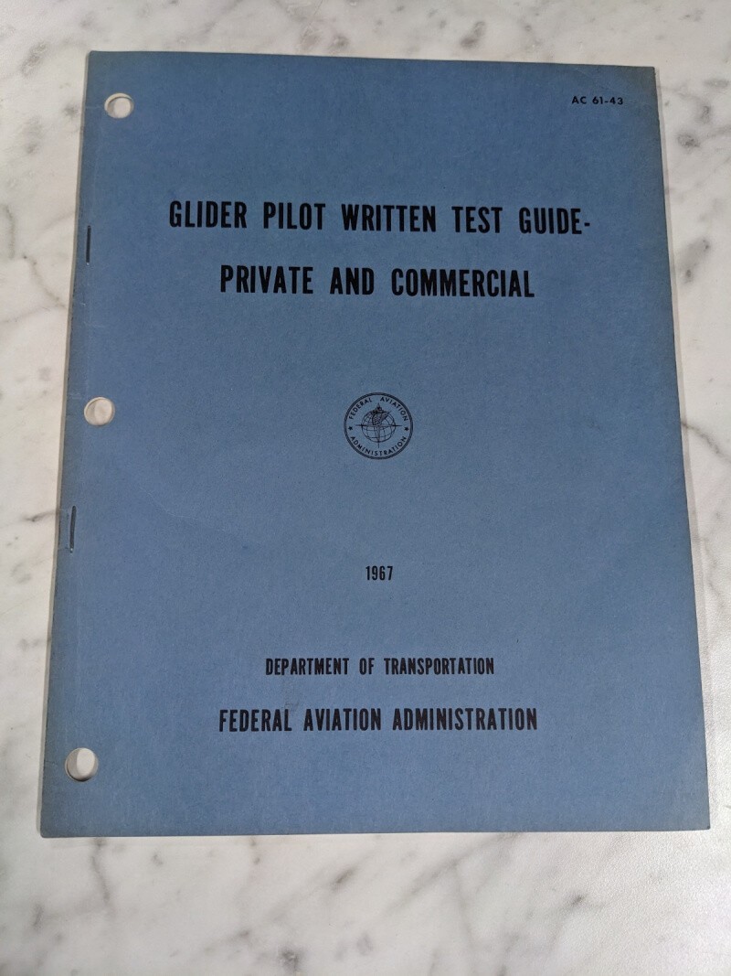 Glider Pilot Written Test Guide Private Commercial Ac 61-43 1967 D.O.T. Aviation
