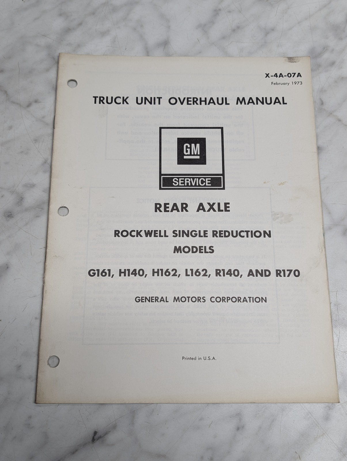 Gm G161 Rear Axle Truck Service Manual 1973 G161, H140, H162, L162, R140, R170