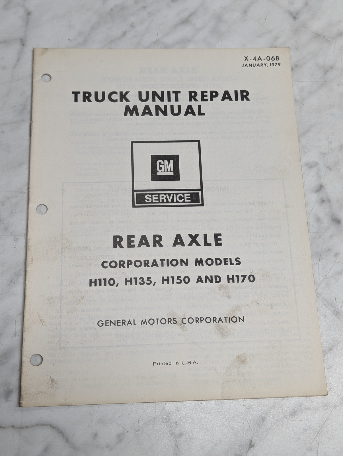 Gm H110 H135 Rear Axle X 4A 06B Truck Unit Repair Manual 1979 Service Shop