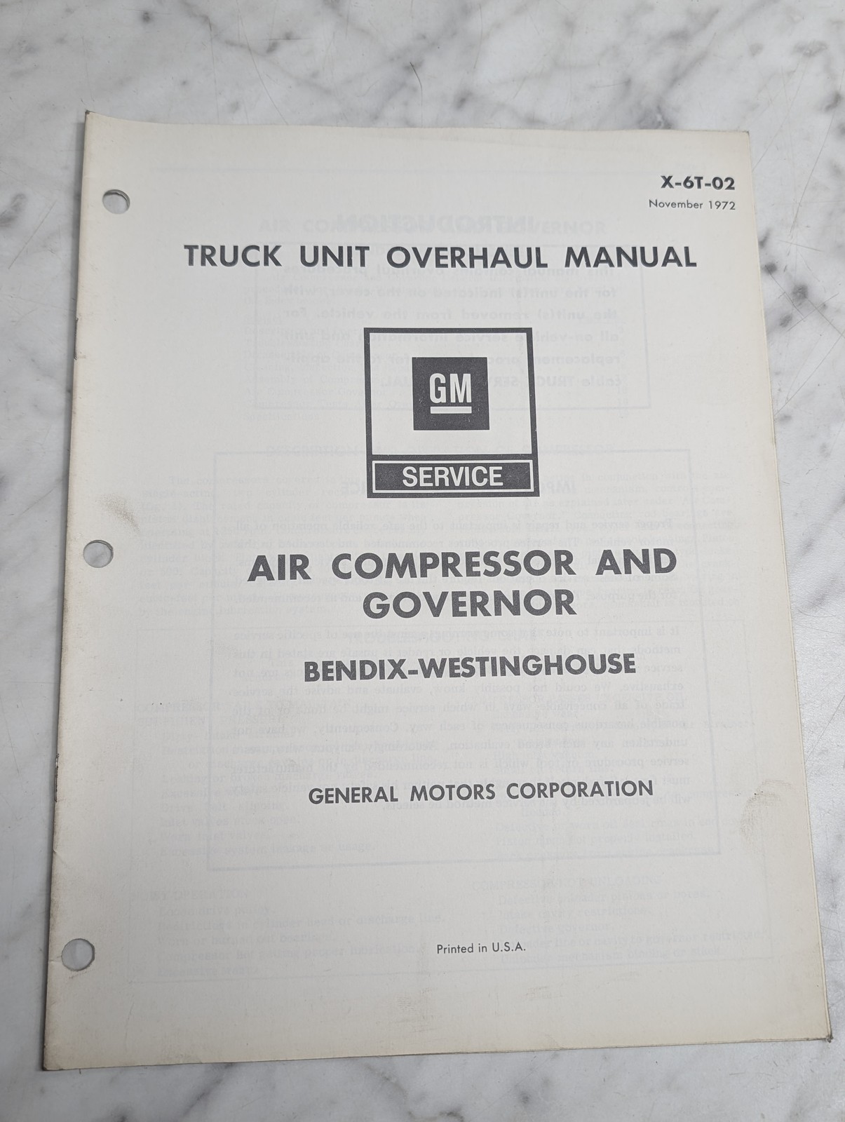 Gm Truck Unit Overhaul Manual Air Compressor Bendix-Westinghouse X-6T-02