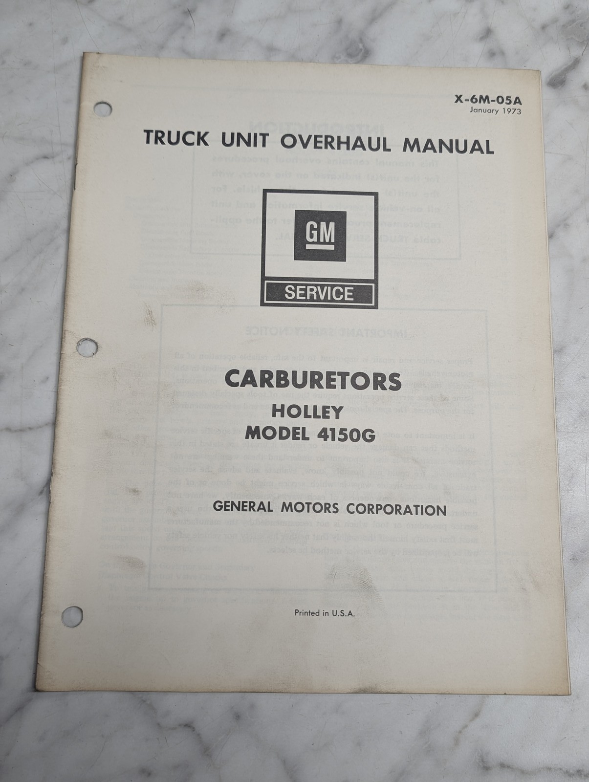 Gm Truck Unit Overhaul Manual Carburetor Holley 4150G Service X-6M-05A 1973