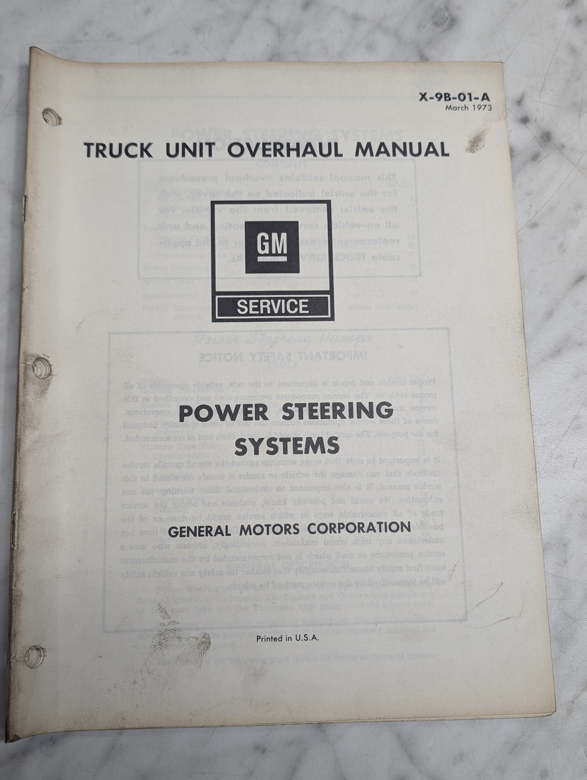 Gm Truck Unit Overhaul Manual Power Steering Systems Service Repair X-9B-01-A