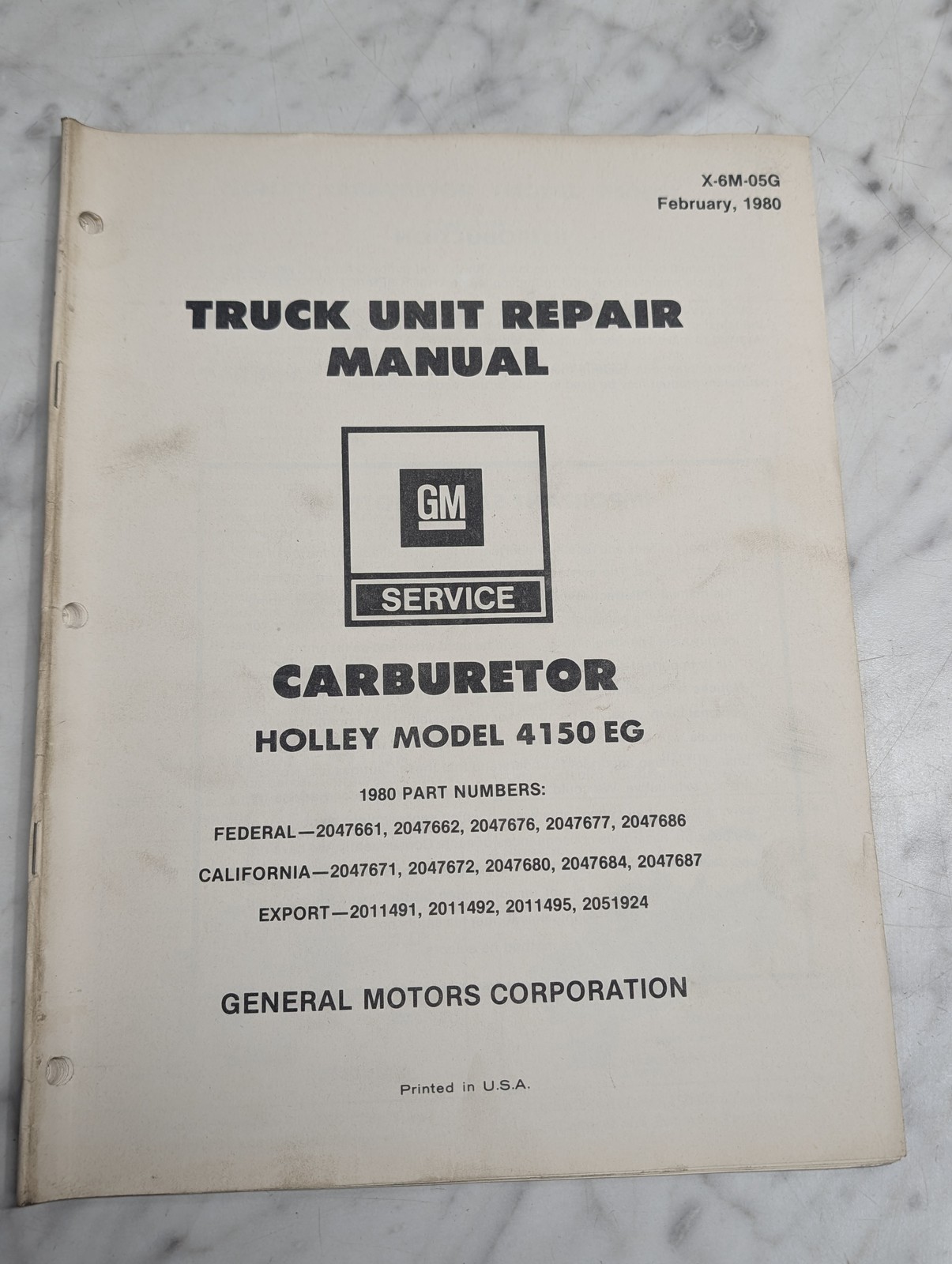 Gm Truck Unit Repair Manual Holley Model 4150Eg Carburetor Service 1980 X-6M-05G
