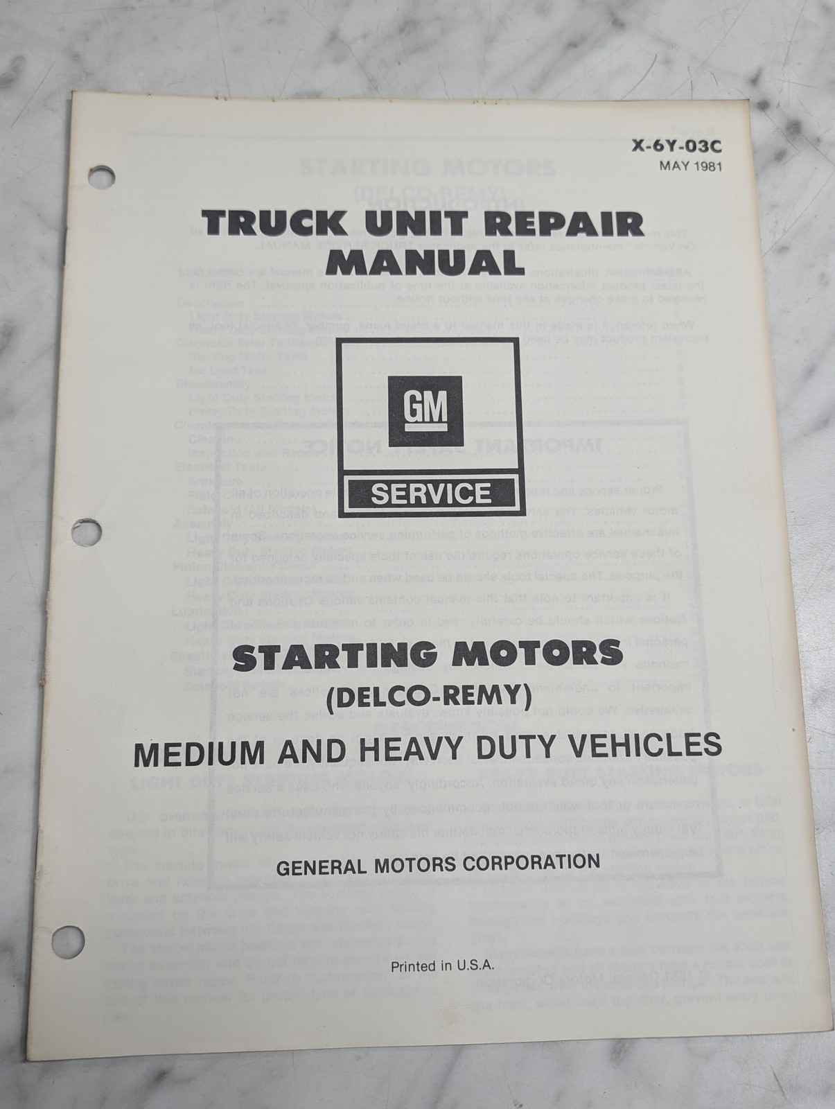 Gm Truck Unit Starting Motors Delco-Remy Medium Heavy Duty 1981 X-6Y-03C