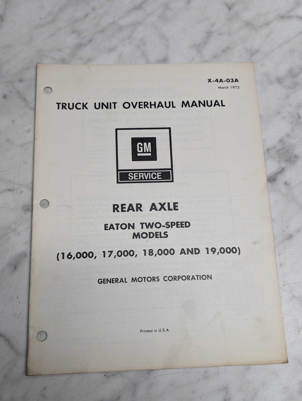 Gm X-4A-03A Truck Unit Rear Axle Eaton Two-Speed Overhaul Manual Service
