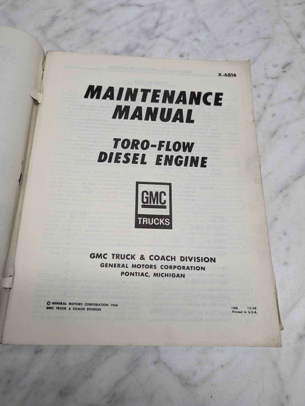 Gmc Dh478 Dh637 Toro Flow Diesel Engine Maintenance Manual X-6816 Trucks