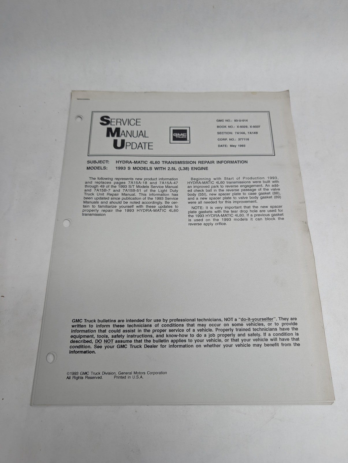 Gmc Service Manual Update 93-U-014 X9323 X9337 4L60 1993 Repair Maintenance Shop