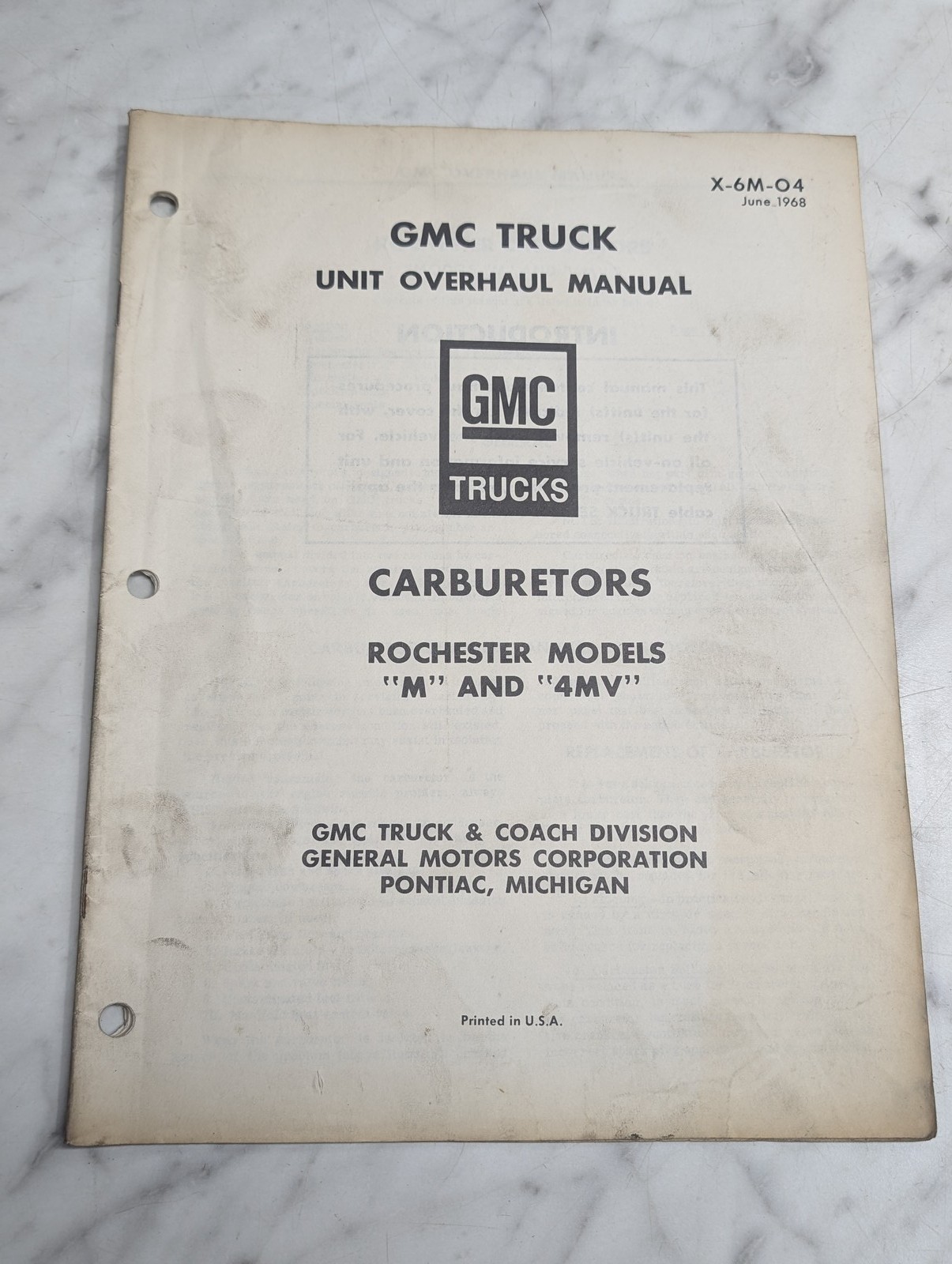 Gmc Truck Unit Overhaul Manual Rochester Models M 4Mv X-6M-04 Carburetors Guide