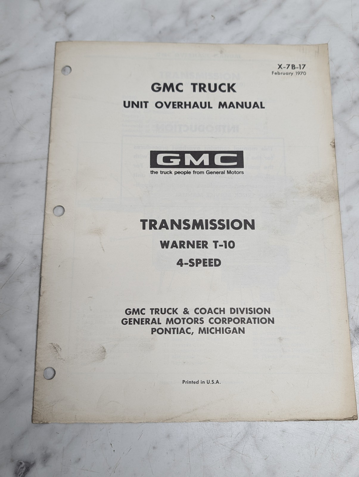 Gmc Truck Warner T-10 Transmission 4-Speed X-7B-17 Unit Overhaul Manual