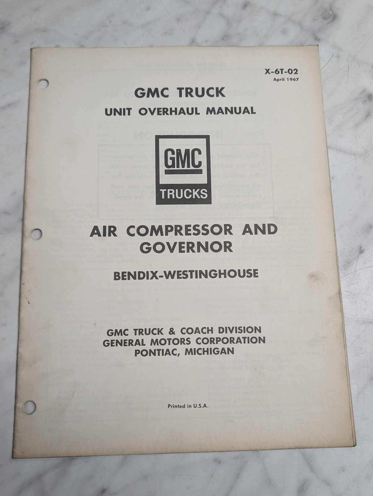 Gmc Truck X-6T-02 Unit Overhaul Manual Air Compressor Governor 1967 Guide Book
