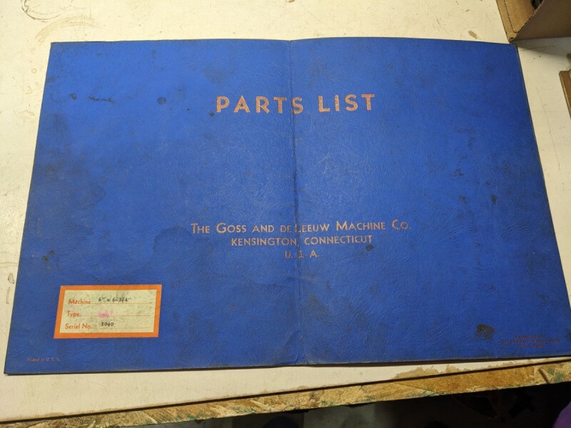 Goss De Leeuw Machine Service Parts List Book Manual Catalog 6X6.75” 1040 1943