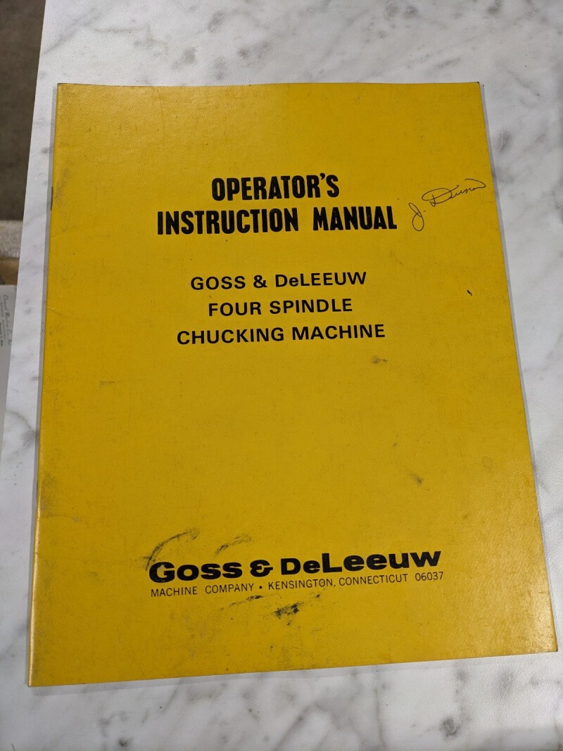 Goss Deleeuw Operator Service Manual Four Spindle Chucking Machine 1981