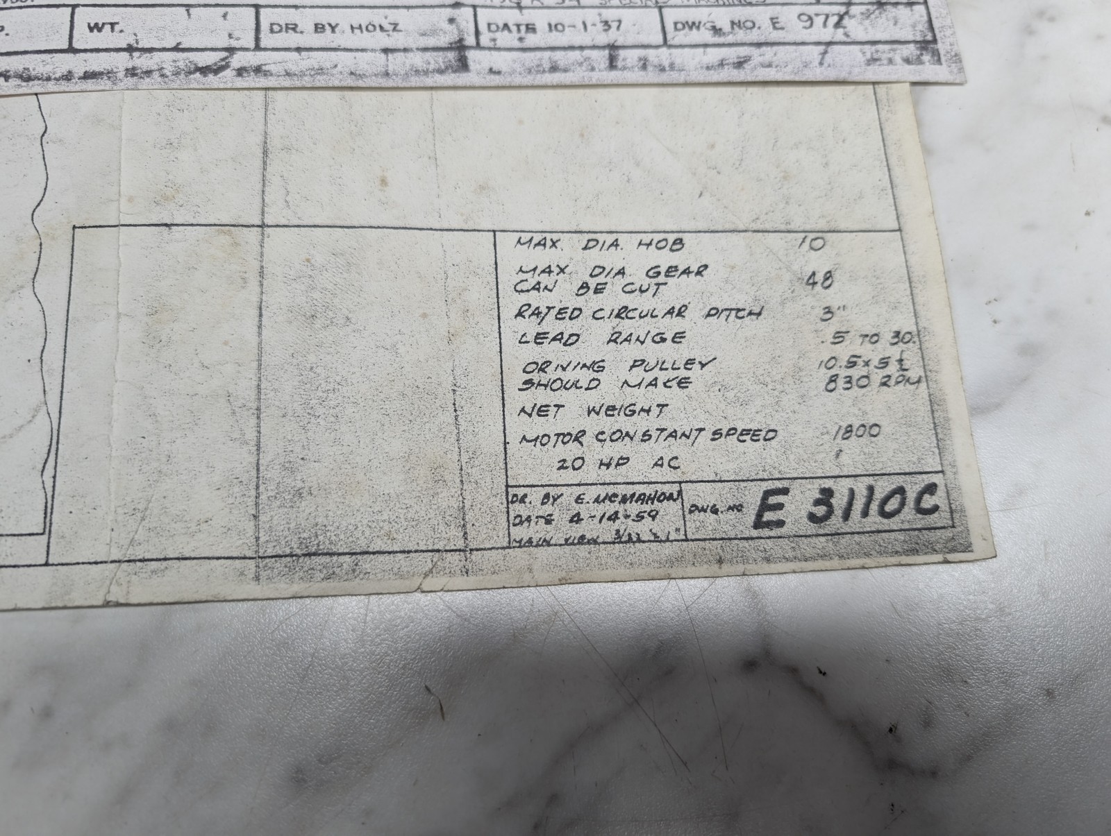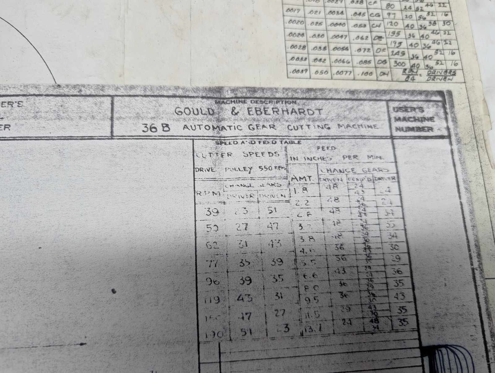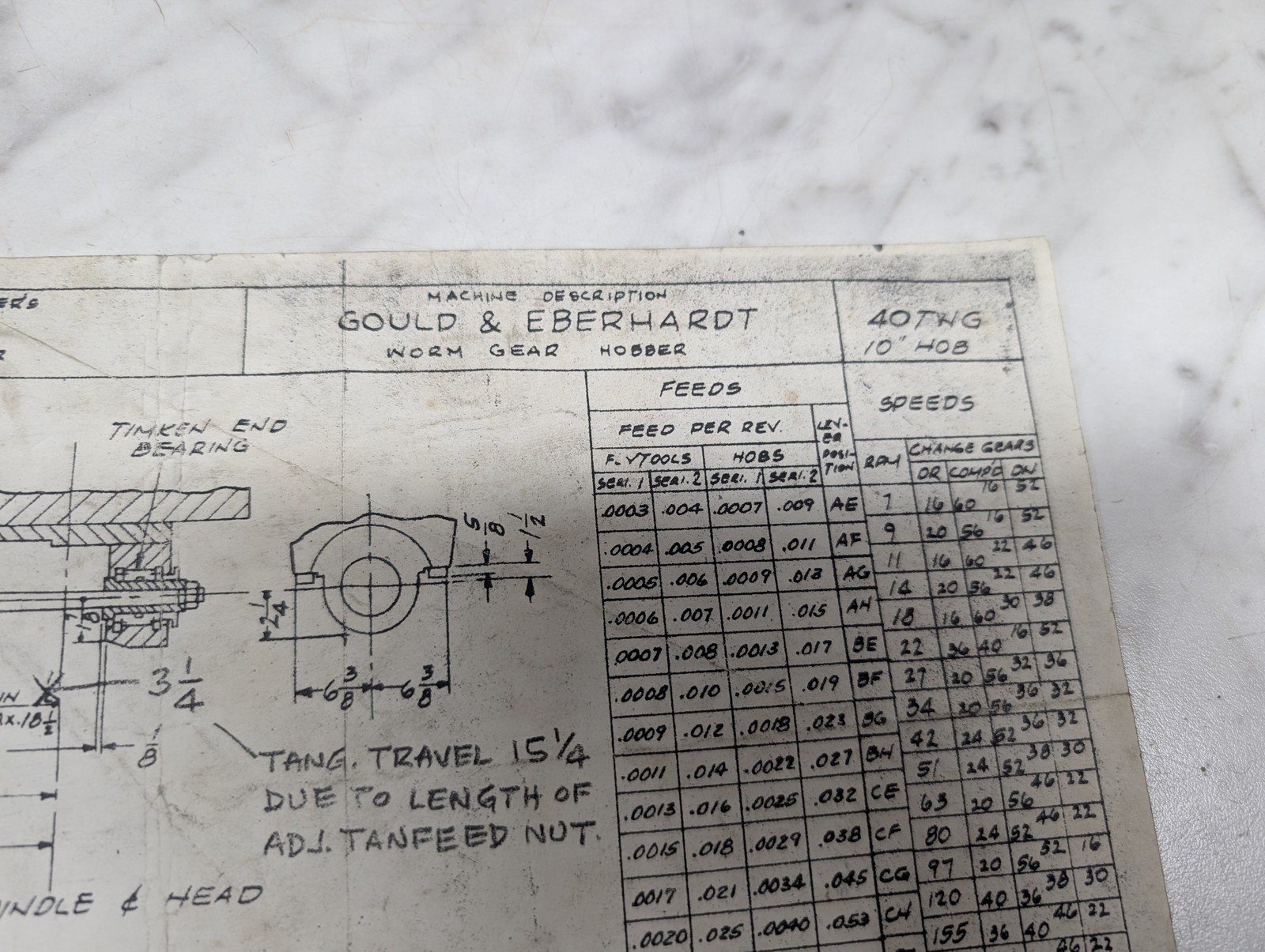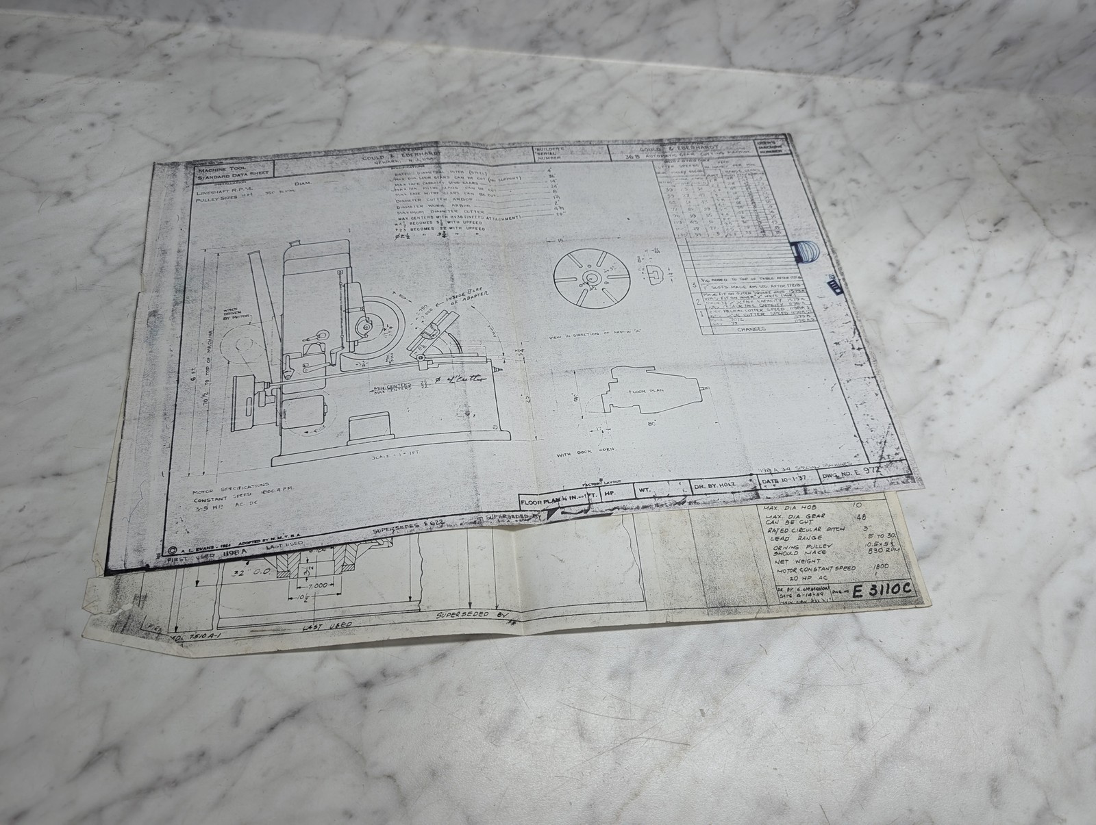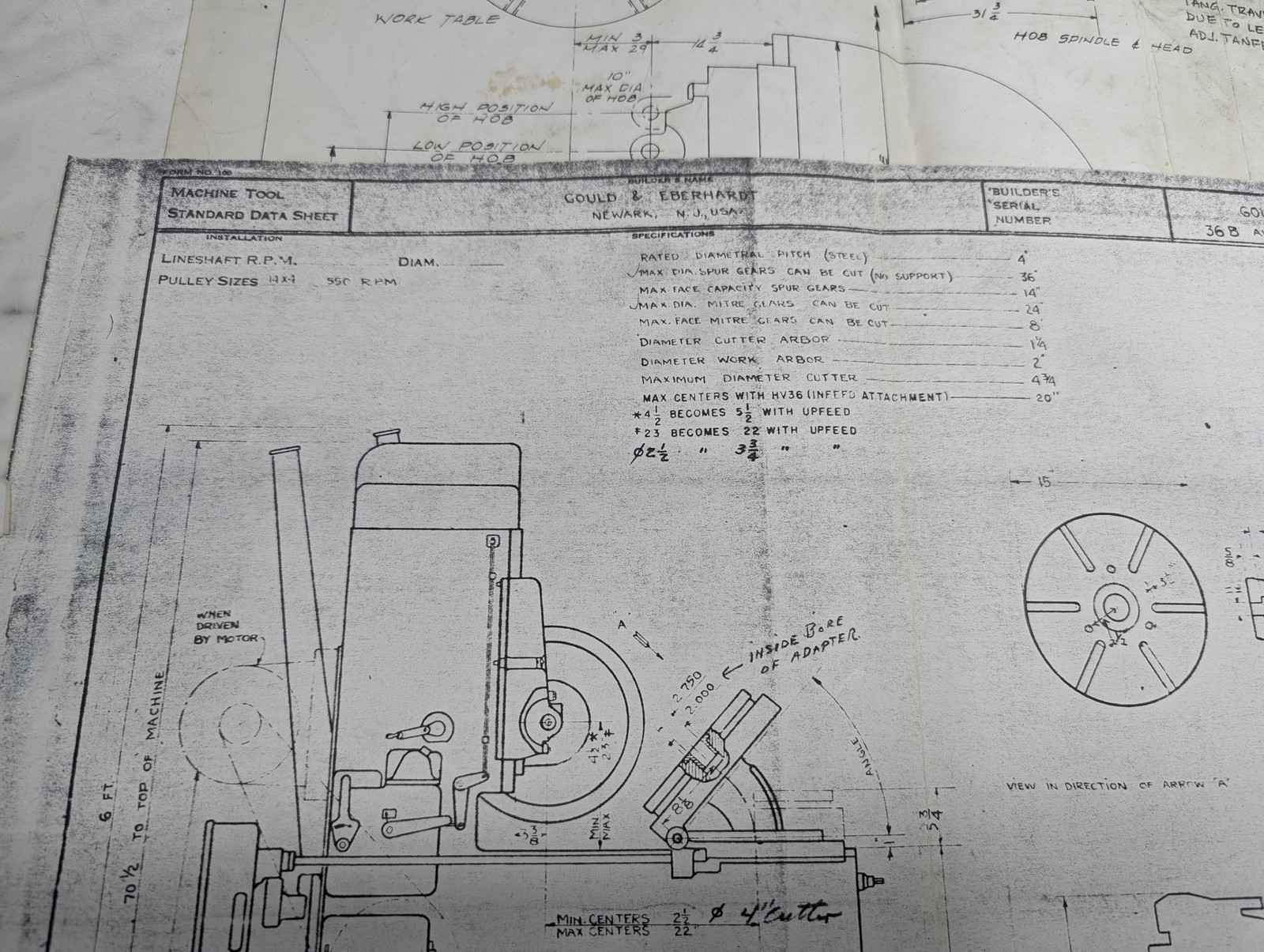 Gould & Eberhardt 36B Gear Cutter Machine Worm Gear Hobber Prints Drawing