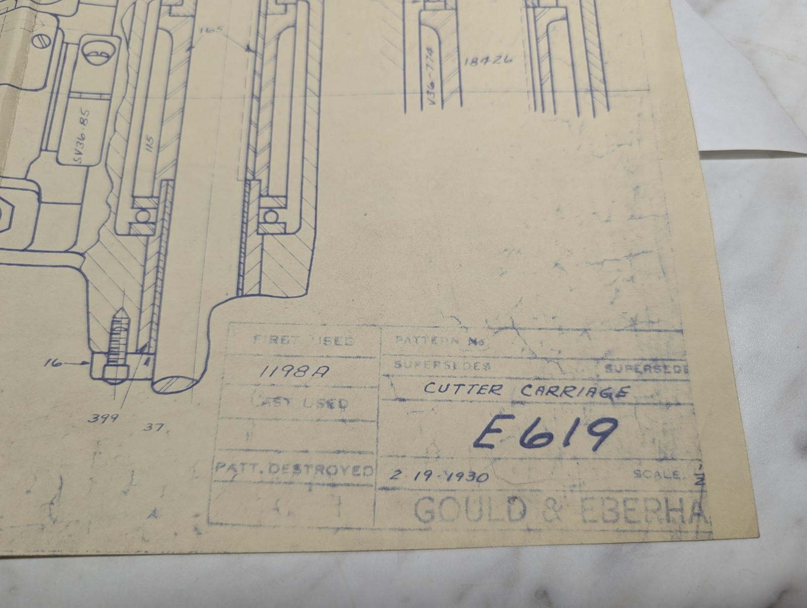 Gould Eberhart Cutter Carriage Drawing Print Technical Information