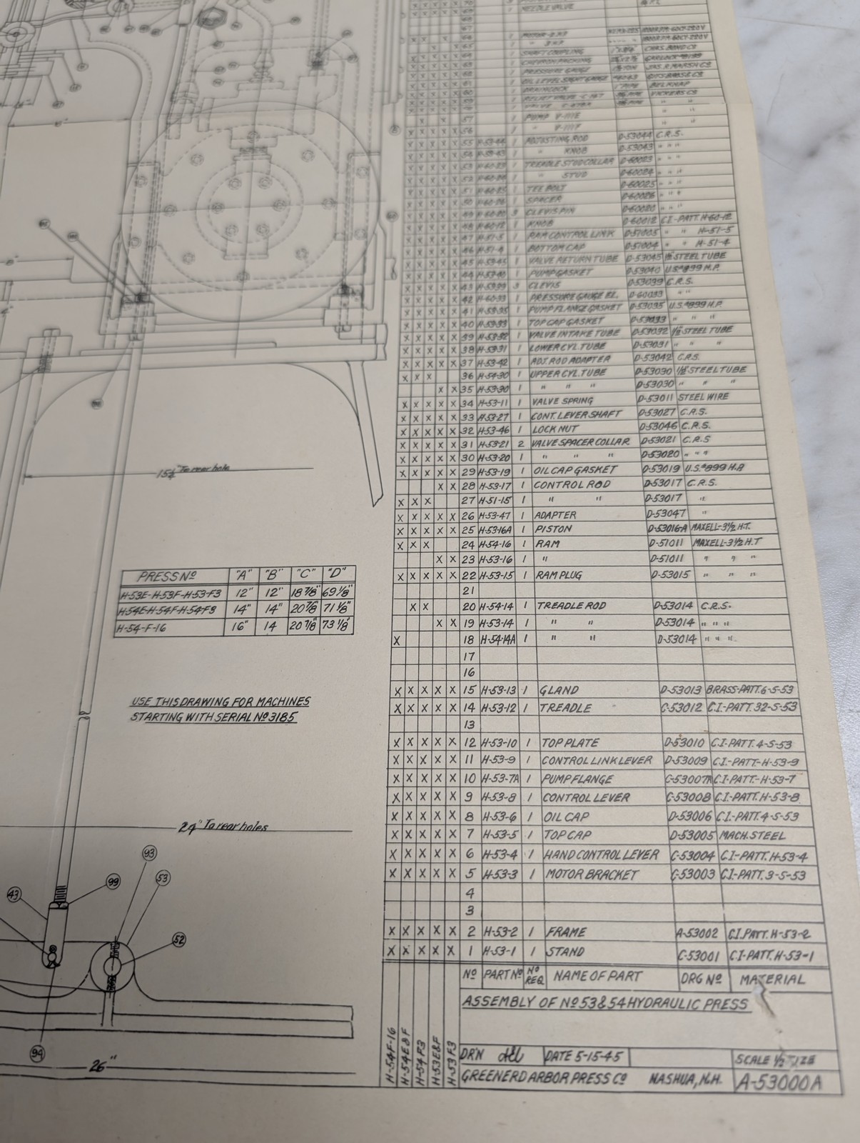 Greenerd Arbor Press Co Assembly Diagram Print Parts List Hydraulic Press #53 54