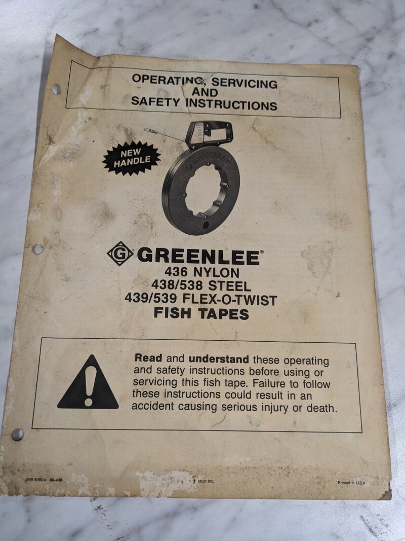 Greenlee 436 Nylon 438 538 Steel 439 539 Flex-O-Twist Fish Tapes Service Manual