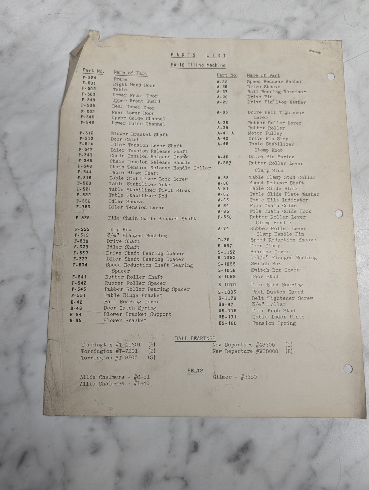 Grob Illustrated Service/Repair Parts List Fa-18 Filing Machine