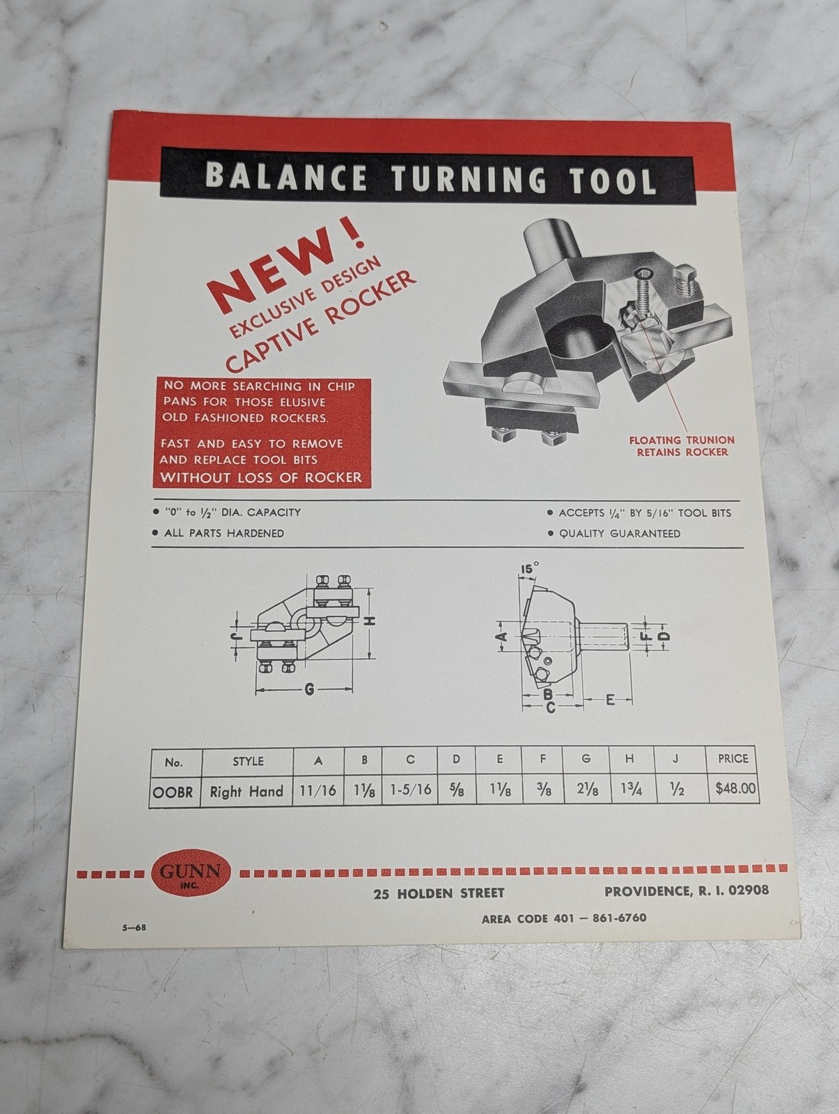 Gunn Balance Turning Tool New Exclusive Design Sales Brochure Literature