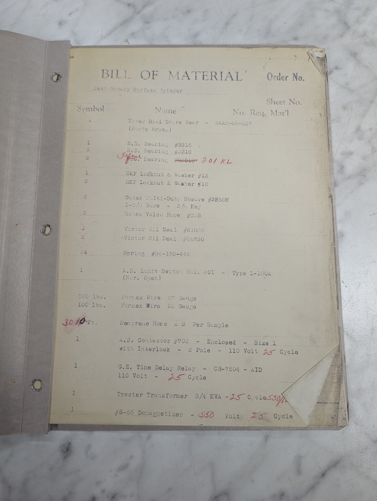 Hanchett #24A2 Rotary Surface Grinder Bill Of Material Parts List ~Text Only