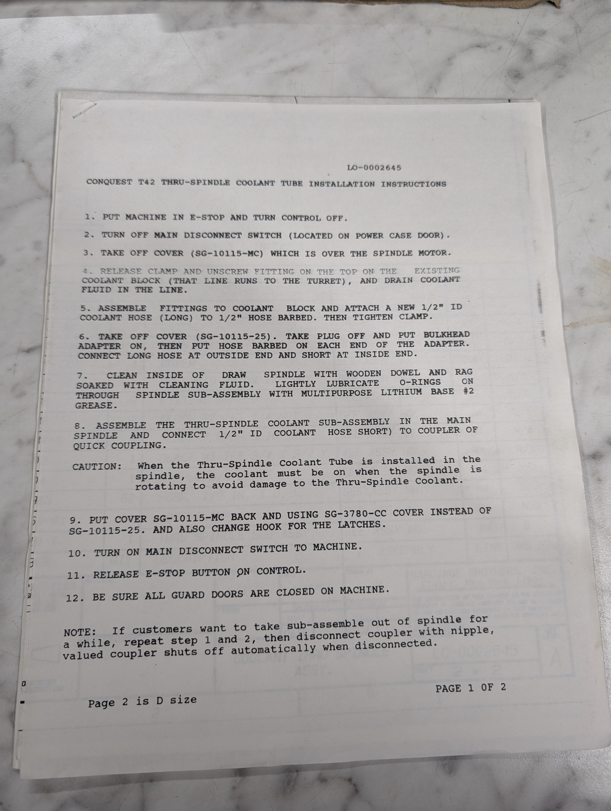 Hardinge Conquest T42 Thru-Coolant Tube Installation Instructions Spindle