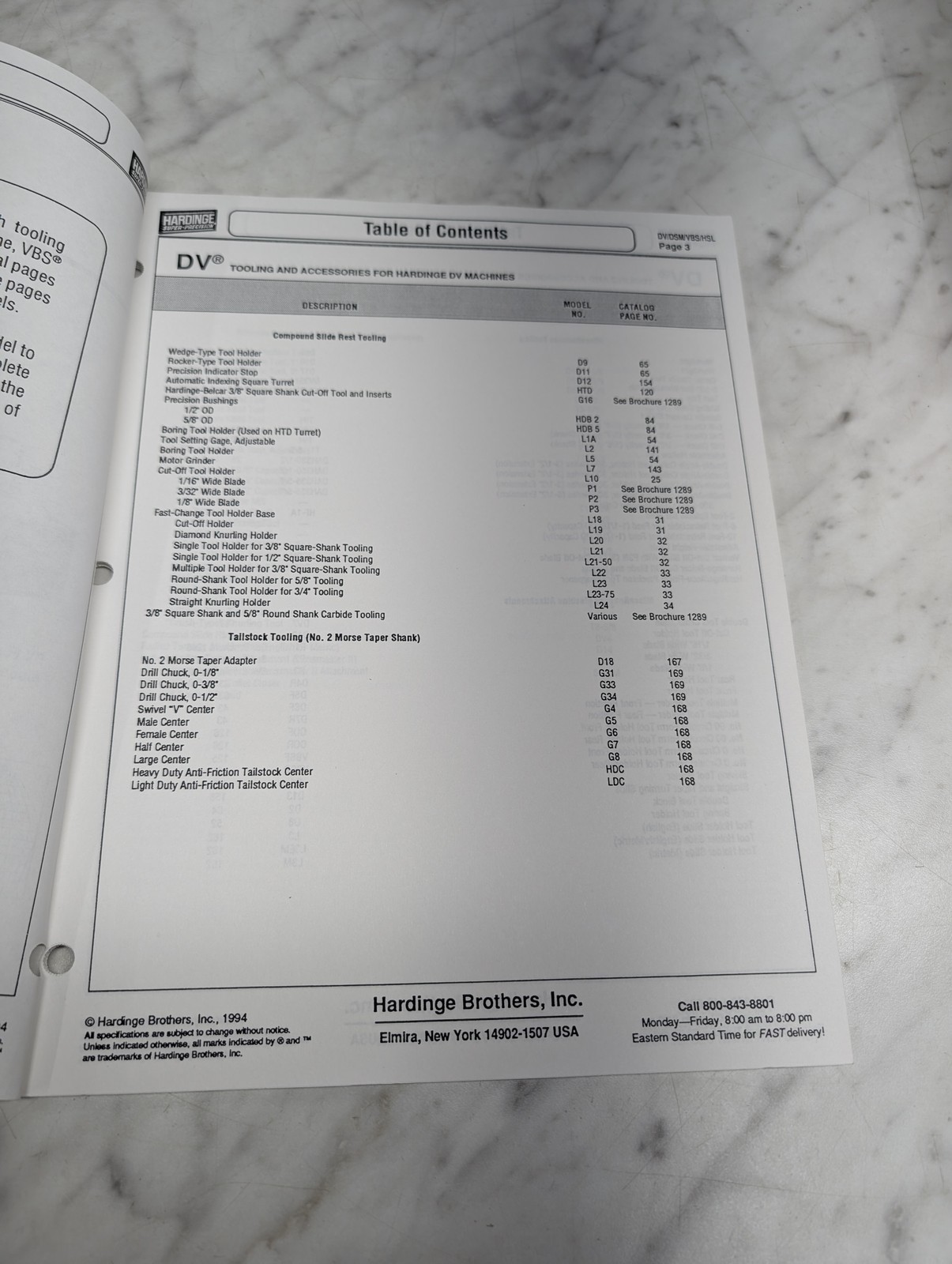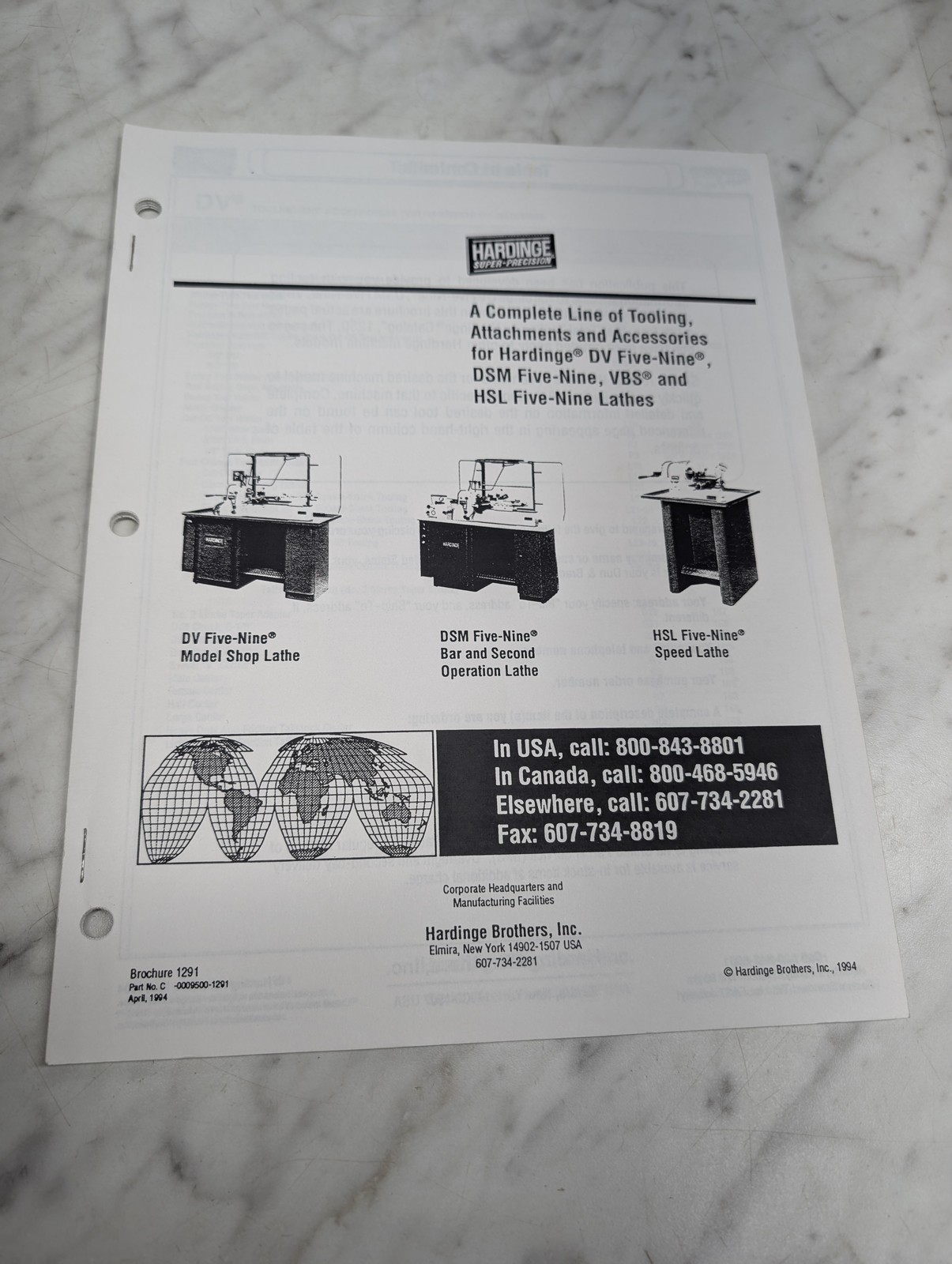 Hardinge Dv Five Nine Dsm Vbs Hsl Lathes Brochure 1291 April 1994